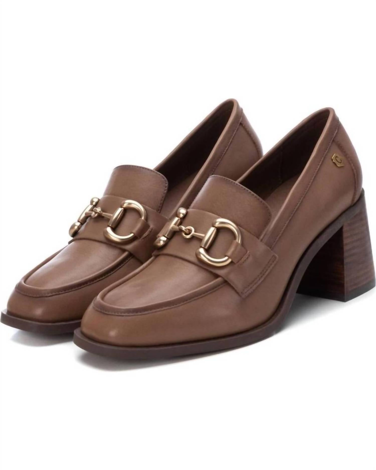 Женские мокасины марки Carmela. Изготовлены из высококачественной кожи. Металлическая деталь спереди. Широкий каблук 7 см и нескользящая подошва.