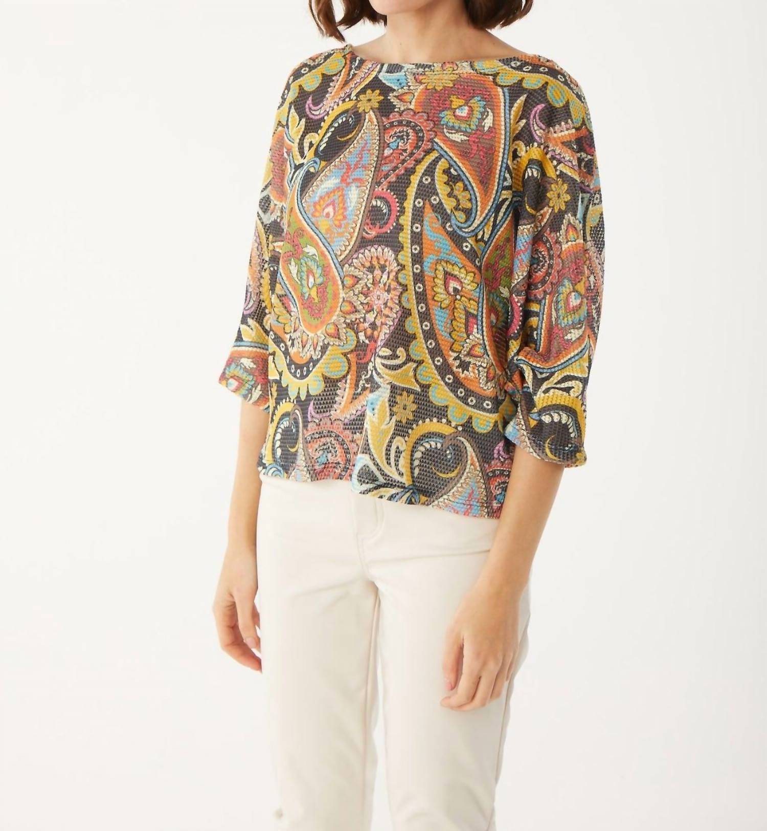 Почувствуйте шикарное очарование фасонов с узором пейсли, который легко очаровывает. Разработан с рукавами «летучая мышь» длиной три четверти и вырезом «лодочка». Изготовлен из удобного состава 95% полиэстера и 5% спандекса. Обеспечивает удобную посадку благодаря простой застежке-липучке.