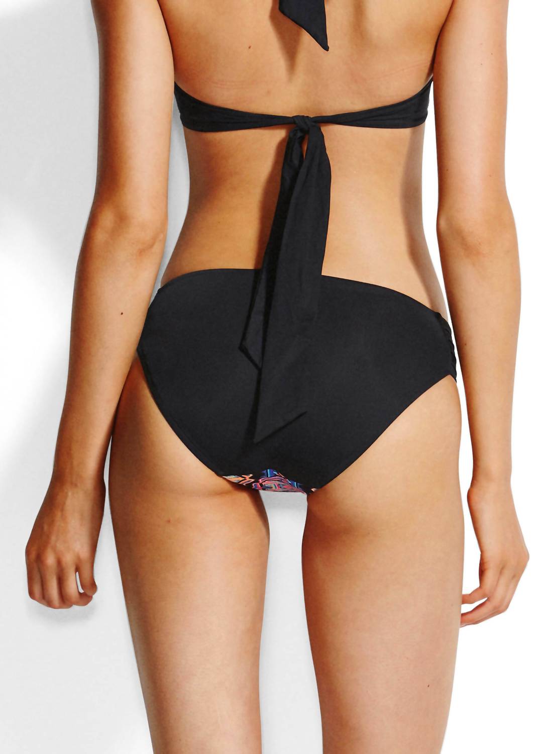 Гладкая эластичная ткань для плавания. Внутренняя часть на подкладке. Яркий геометрический принт. Контрастные бока и спинка. Широкие сборчатые бока. Обеспечивает большую защиту. Состав: 78% нейлон, 22% эластан. Только ручная стирка.