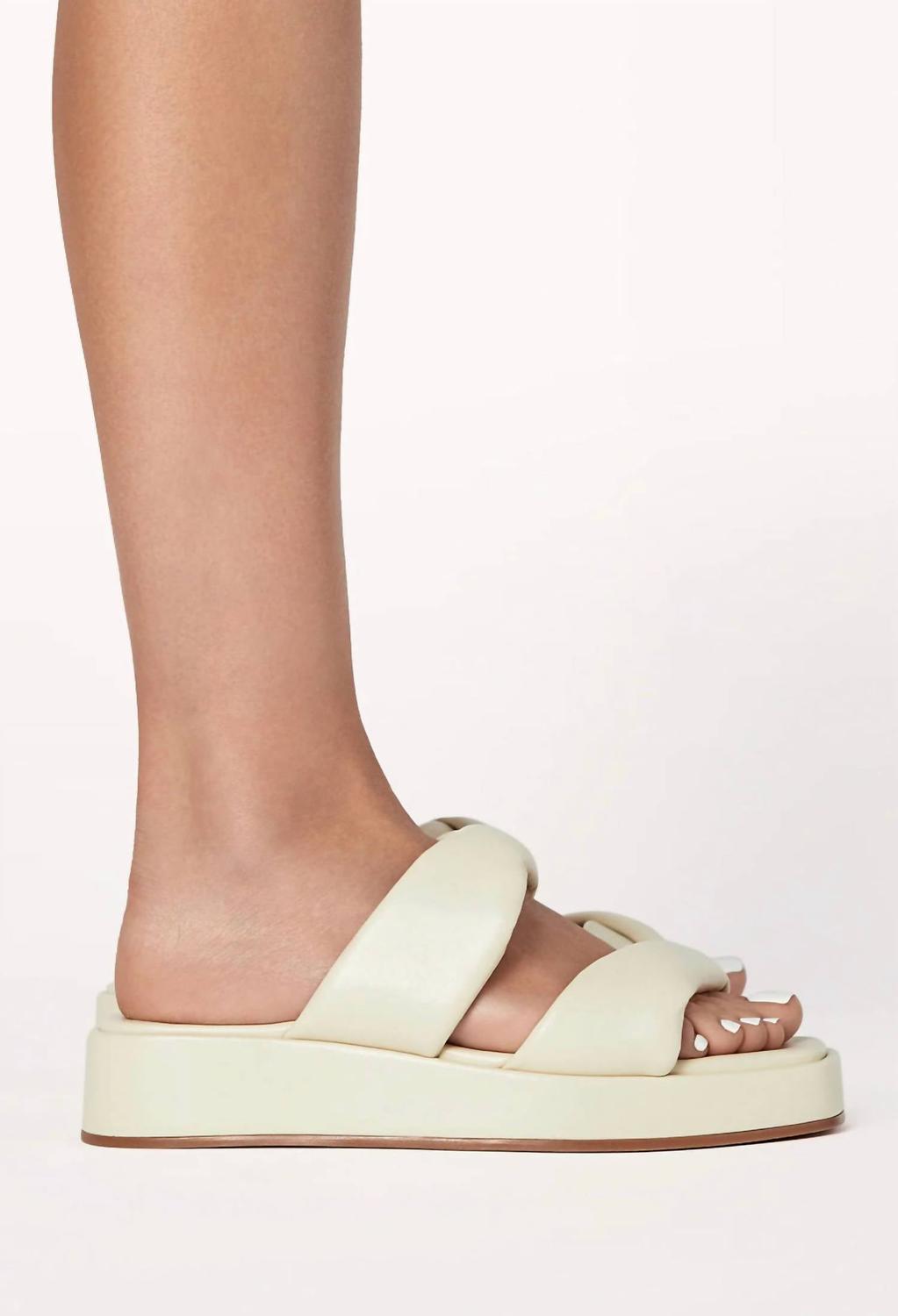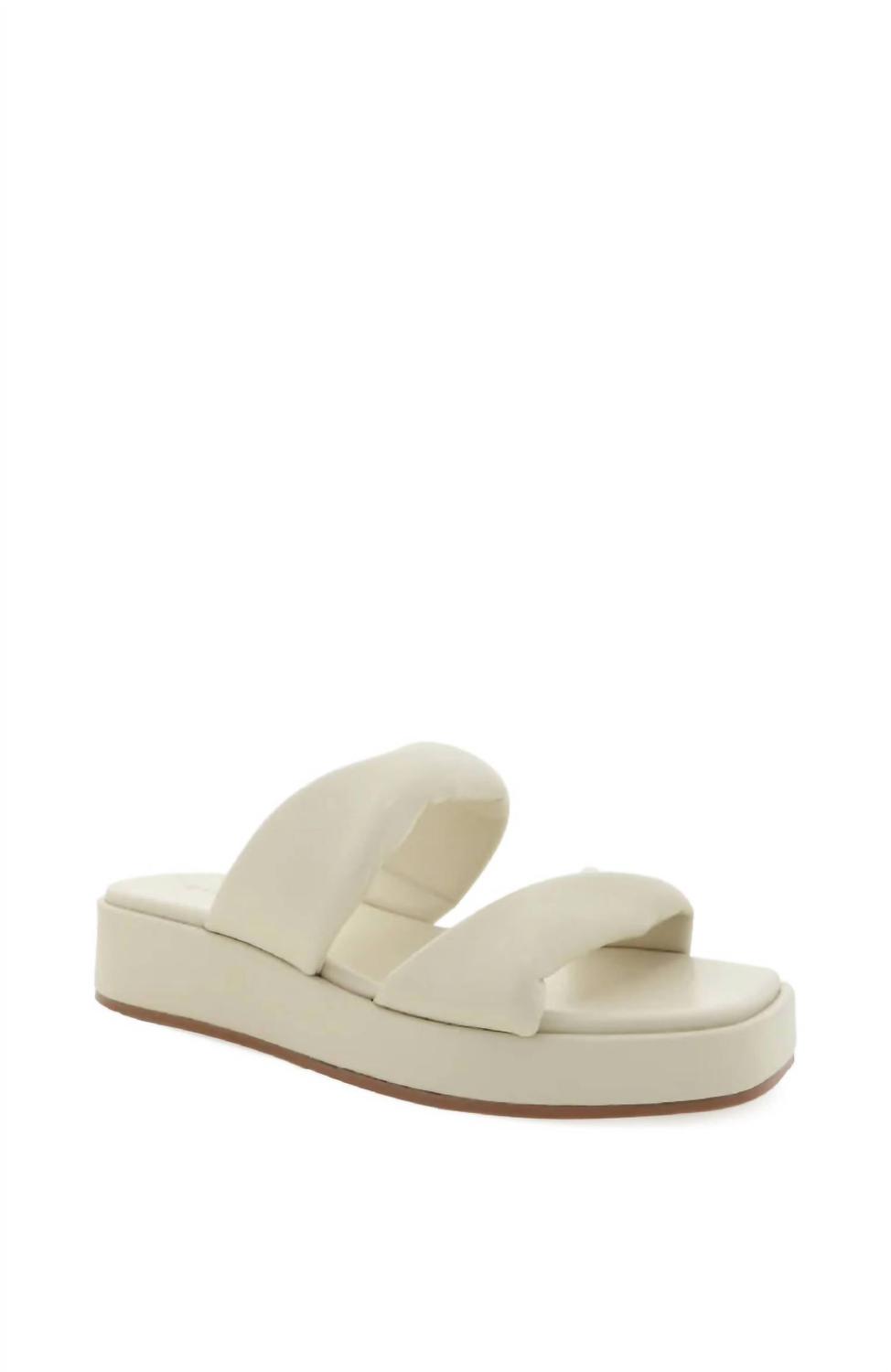 Подошва с амортизацией на платформе. Мягкий открытый миндалевидный носок. Широкий мягкий ремешок с двойным витком. Легко надеваемый дизайн. Открытый задник. Синтетический верх, подкладка и подошва. Высота платформы 3,5 см.