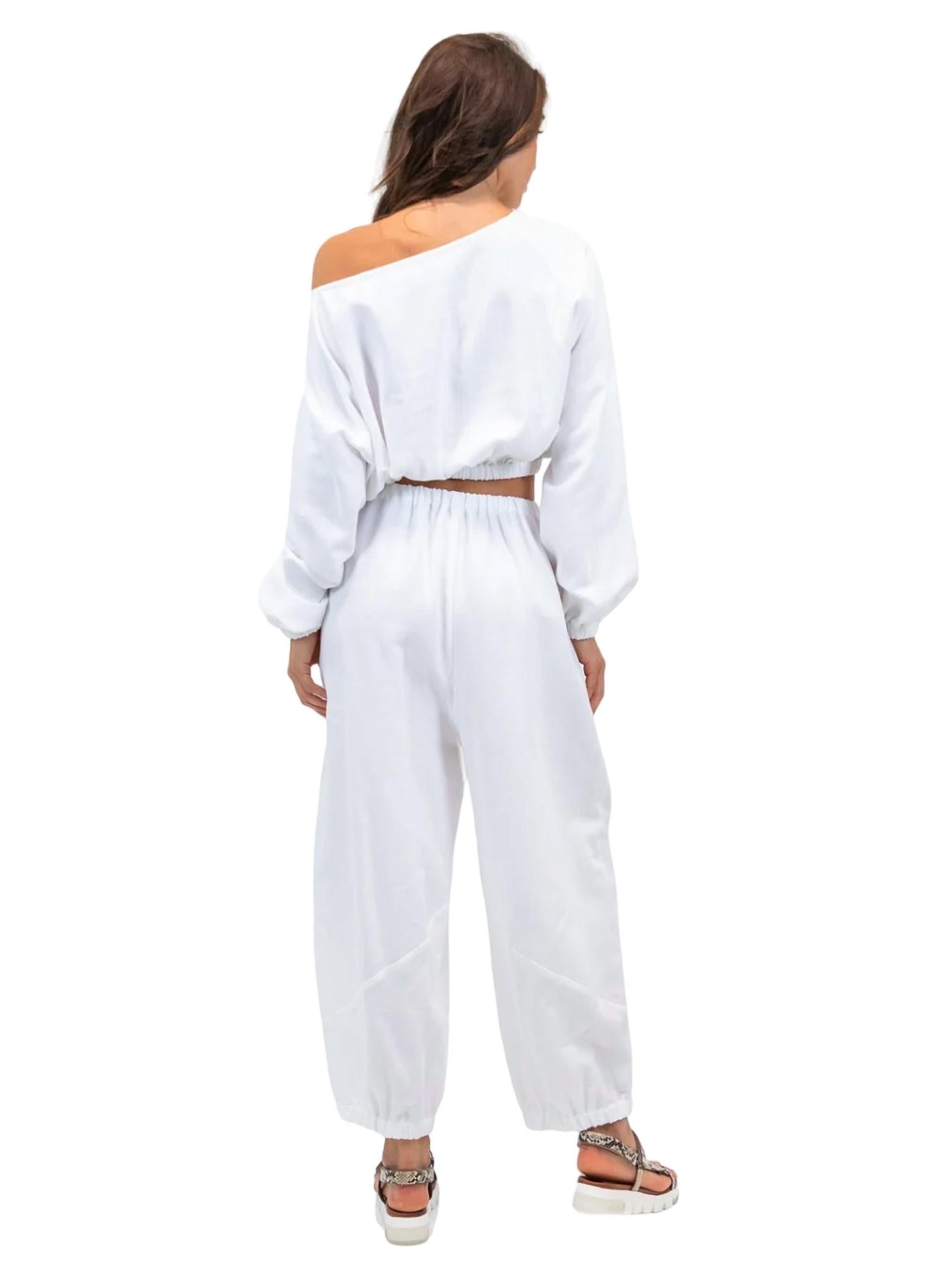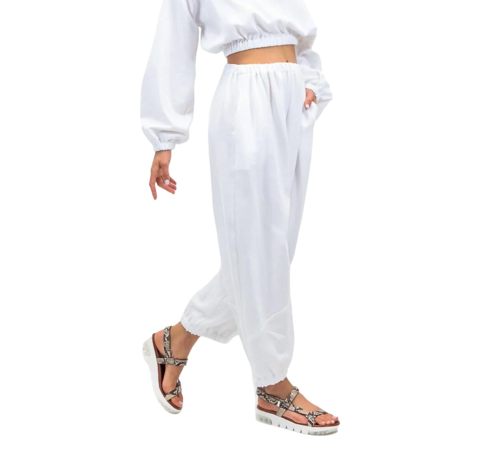 Эта легкая коллекция создана для комфорта и стиля. Она имеет эластичный пояс с высокой талией и эластичные манжеты на щиколотке. Материал — 100% хлопок. Посадка соответствует размеру.