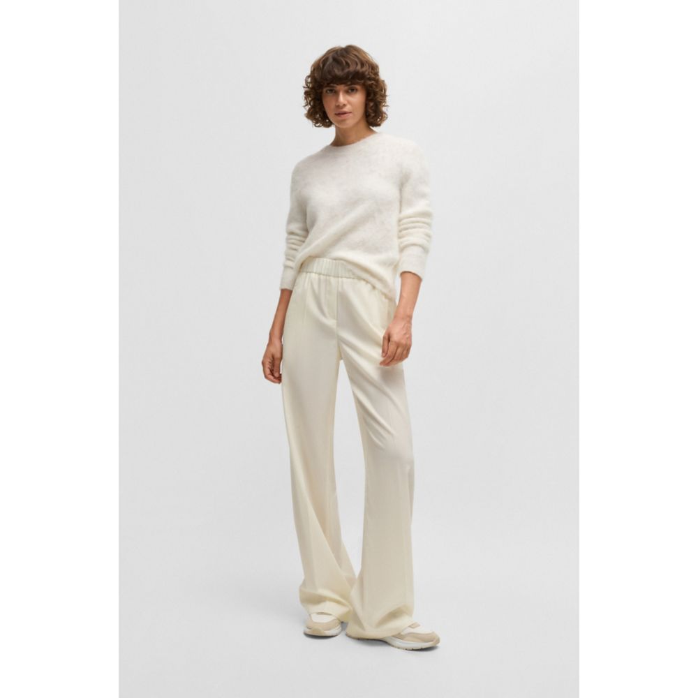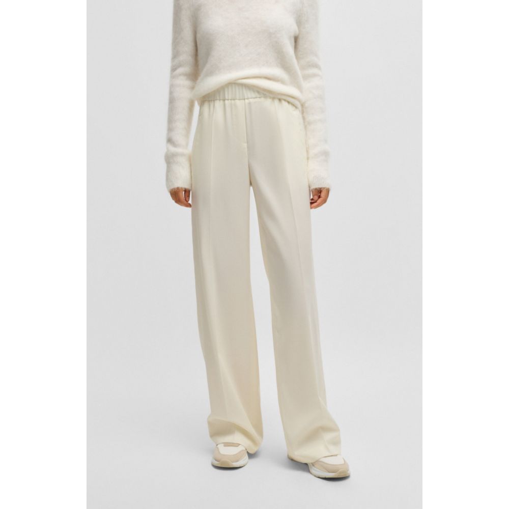Эти удобные брюки от BOSS Womenswear свободного кроя из шерсти. Эластичный пояс для комфорта в течение всего дня. Широкие штанины.