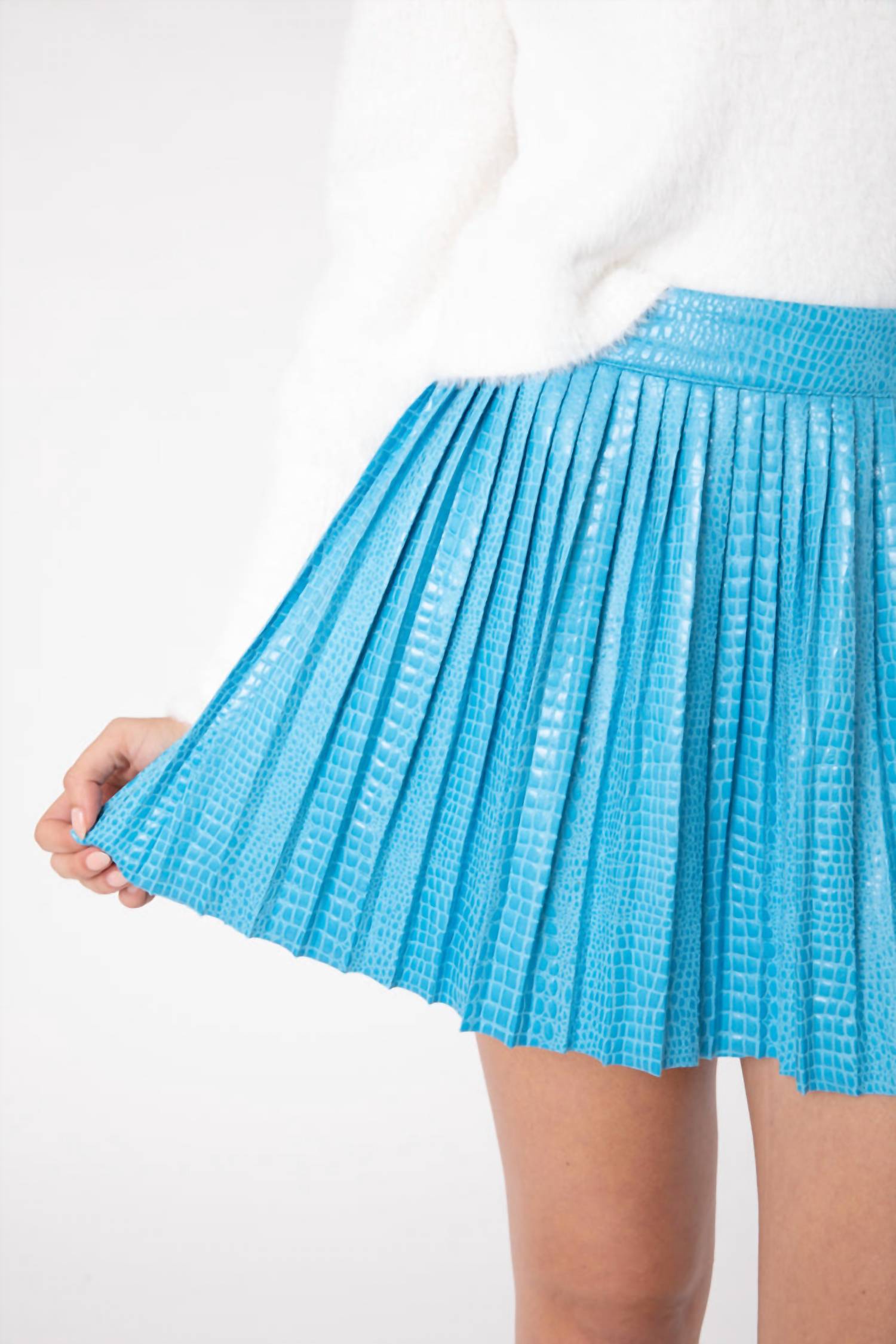 Юбка в складку. Синие детали из искусственной змеиной кожи. Юбка мини-длины. 100% полиэстер.