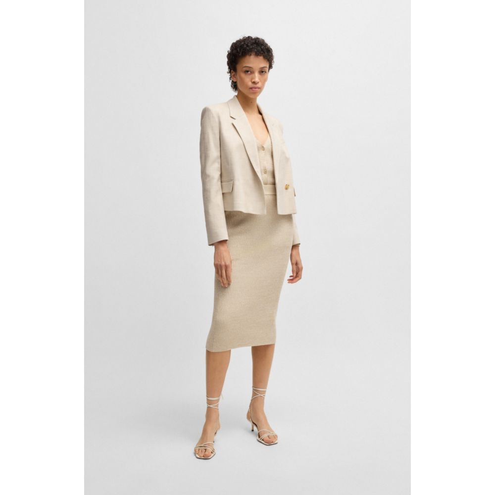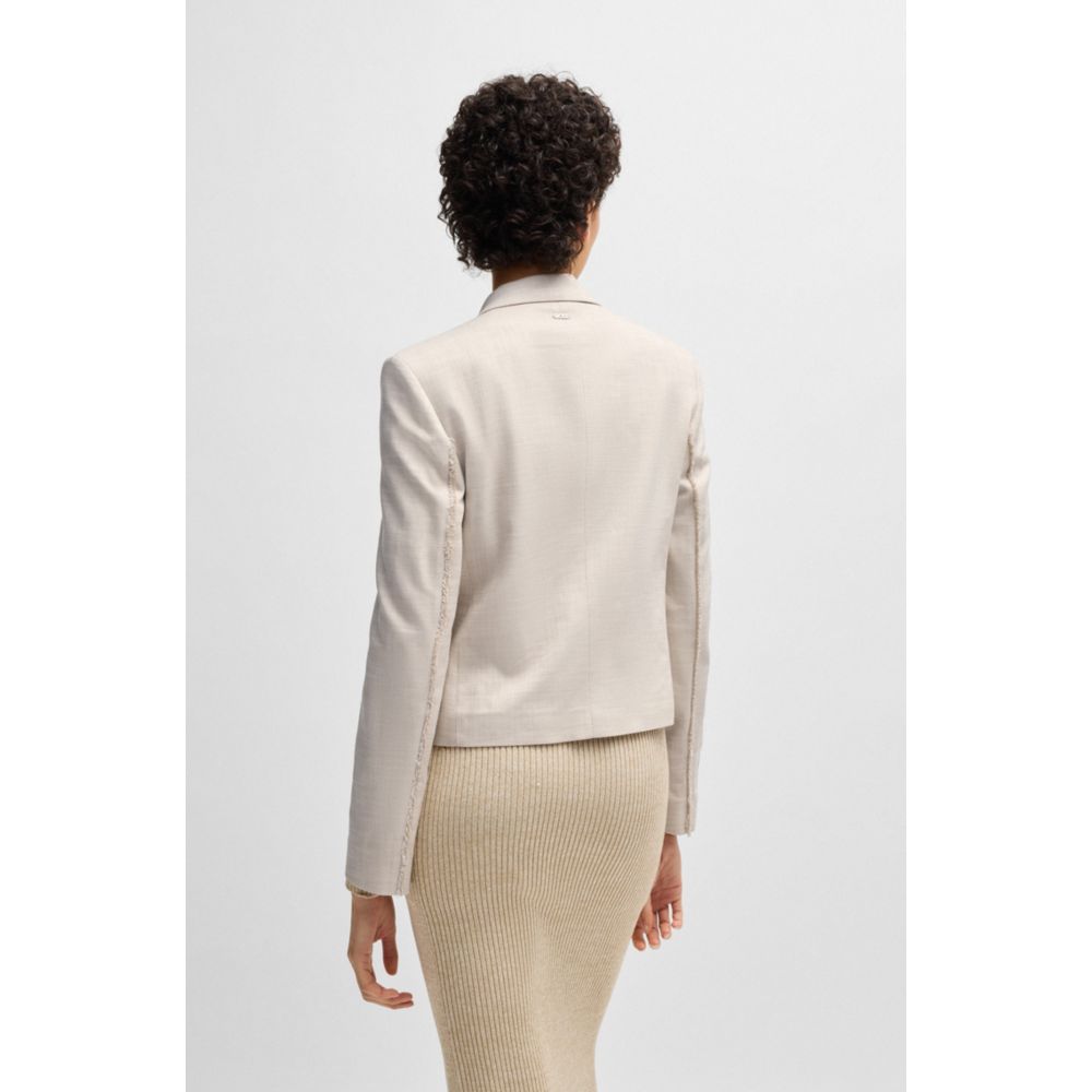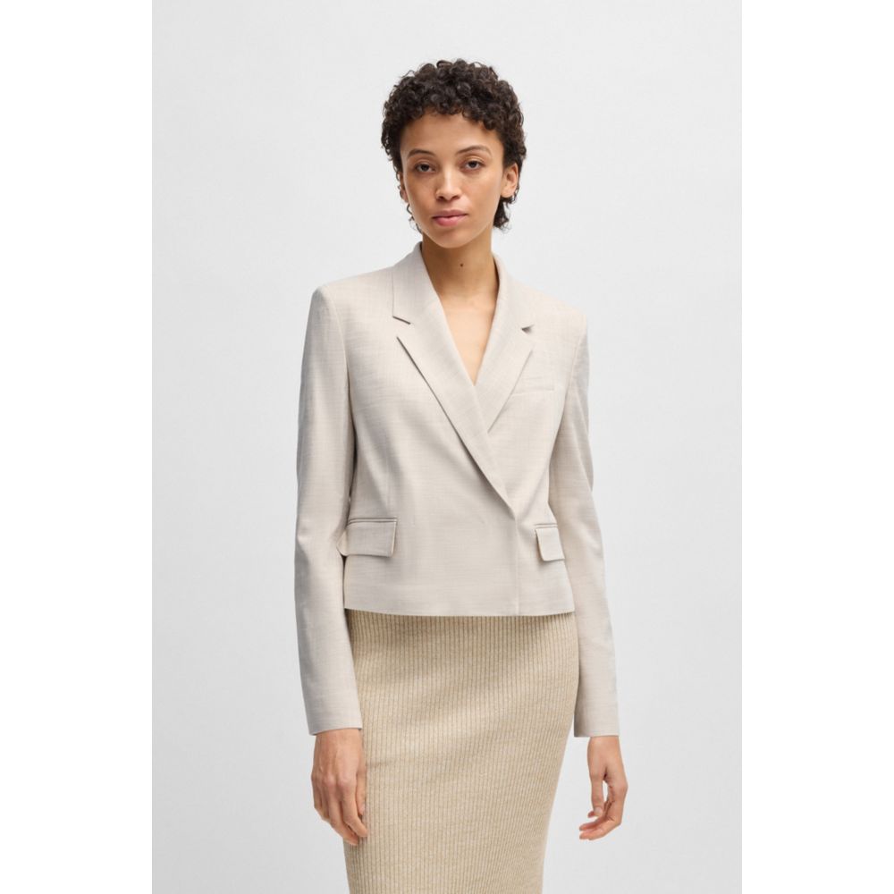Этот блейзер BOSS Womenswear, который легко стилизовать, имеет прямой, слегка укороченный крой. Меланжевая ткань с добавлением эластичности для комфорта.
