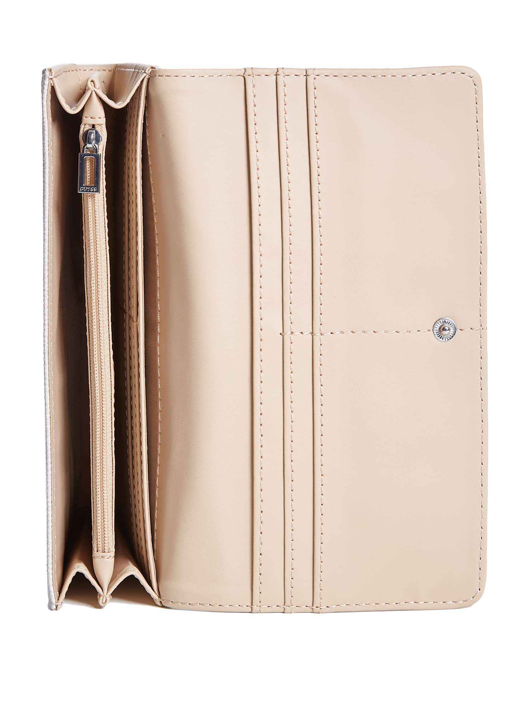 Этот блестящий кошелек-клатч из искусственной кожи можно брать с собой куда угодно: он имеет откидной клапан и пластинку с логотипом спереди.