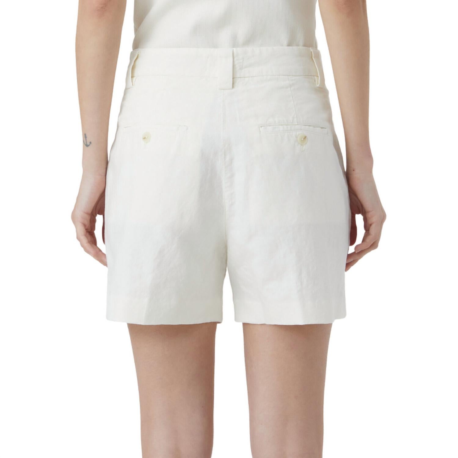 Высокая талия никуда не денется, и нам особенно нравится этот стиль шорт. Изготовлены из легкой смеси льна и хлопка с яркой структурой и окрашенной в готовом виде отделкой. Отличаются средней линией талии, складками, а также задними карманами с окантовкой и пуговицами. Состав - 51% лен, 49% хлопок. Машинная стирка. Размер 27, внутренний шов 4,1". Сделано в Румынии.