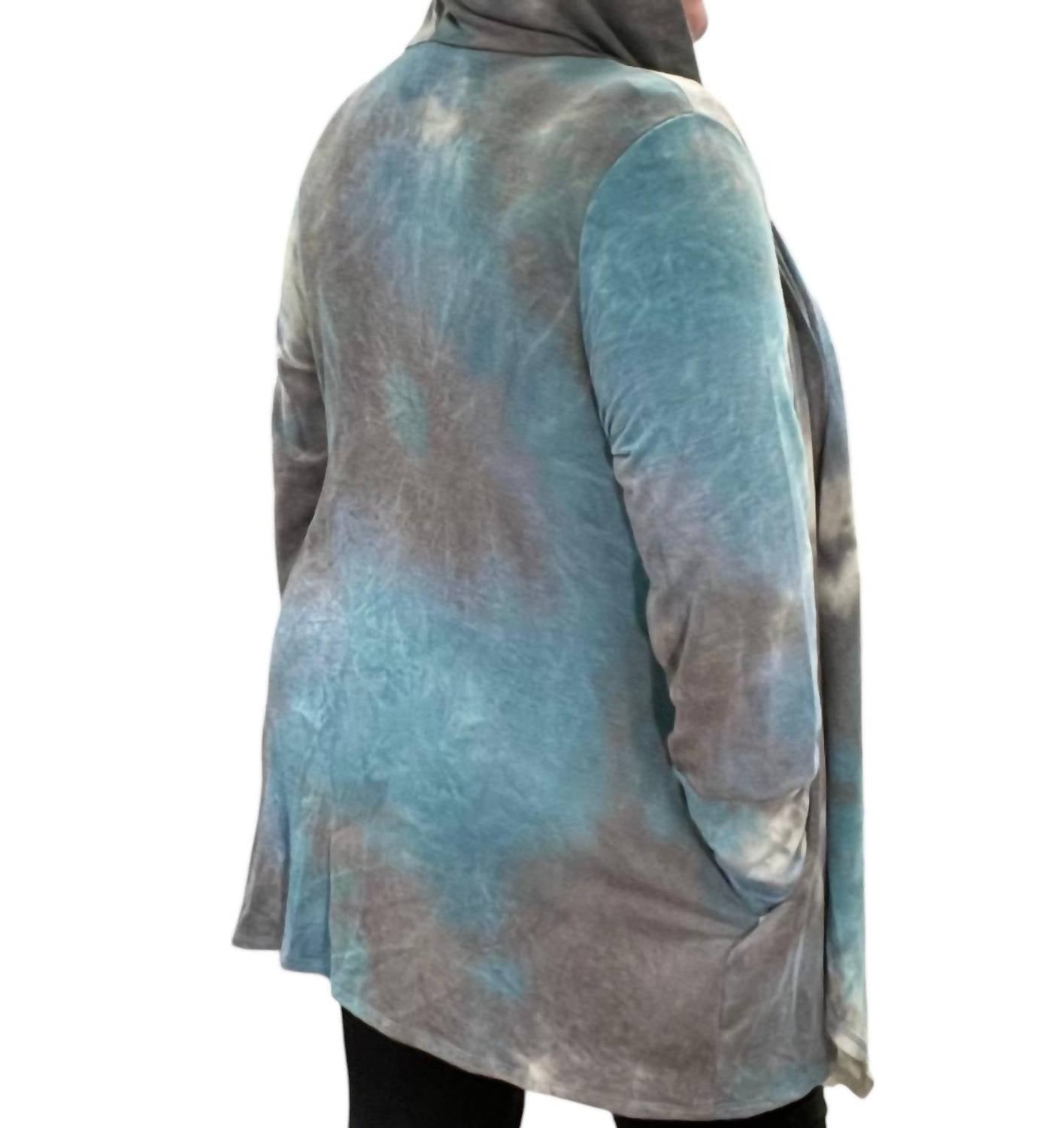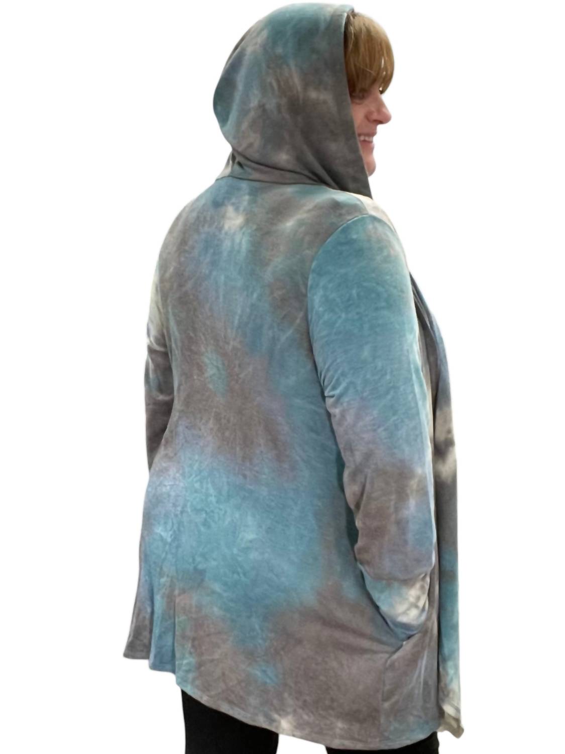 Открытый перед. Тай-дай. Карман. Пришитый капюшон. 63% полиэстер, 34% вискоза, 3% спандекс. Машинная стирка в холодной воде.