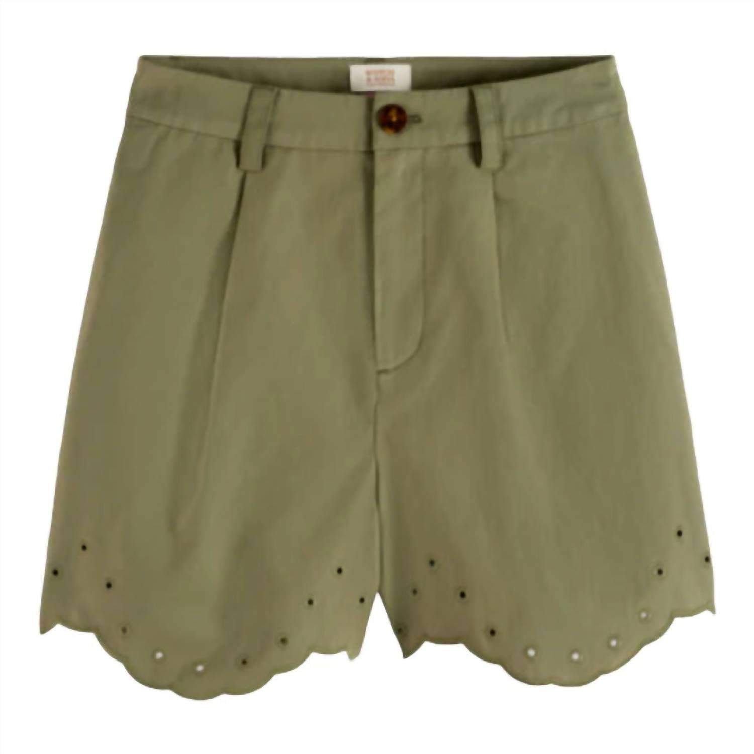 Эти красивые темно-зеленые шорты с высокой посадкой и вышивкой имеют фестончатый подол и люверсы. Изготовленные из 100% органического хлопка, они, несомненно, станут фаворитами этого сезона. Машинная стирка в холодной воде с вещами похожих цветов.