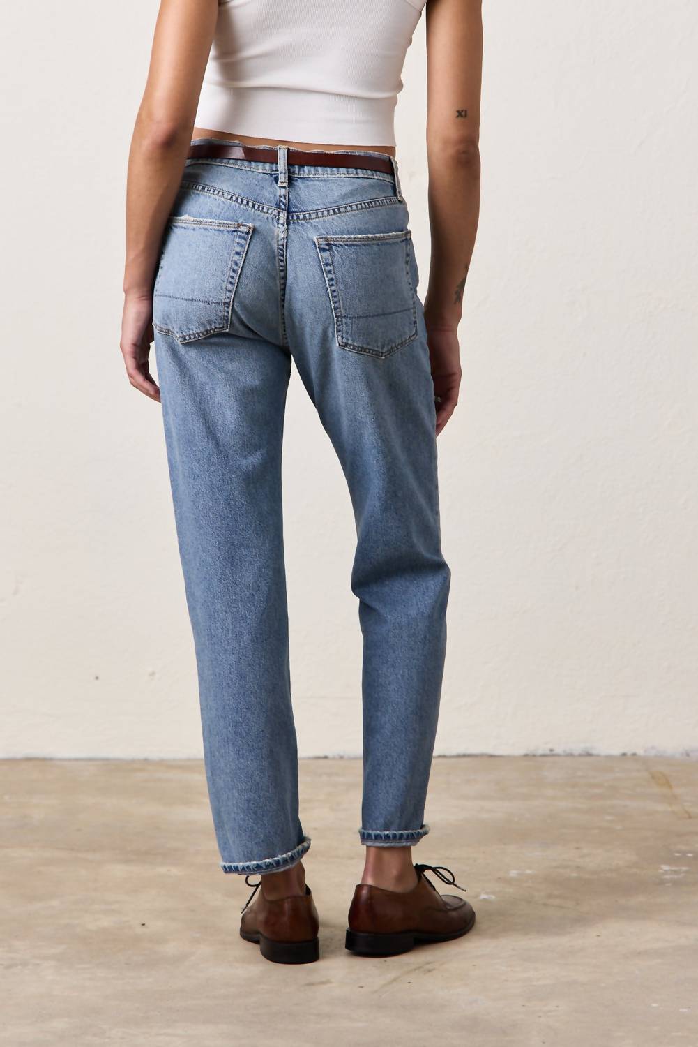 Расслабленный шик. Джинсы с пятью карманами, сшитые по индивидуальному заказу с многоэтапной ручной стиркой. Джинсы со средней посадкой и свободным кроем, длина внутреннего шва 29 дюймов. 100% хлопок. Машинная стирка в холодной воде. Сделано в Лос-Анджелесе, Калифорния.