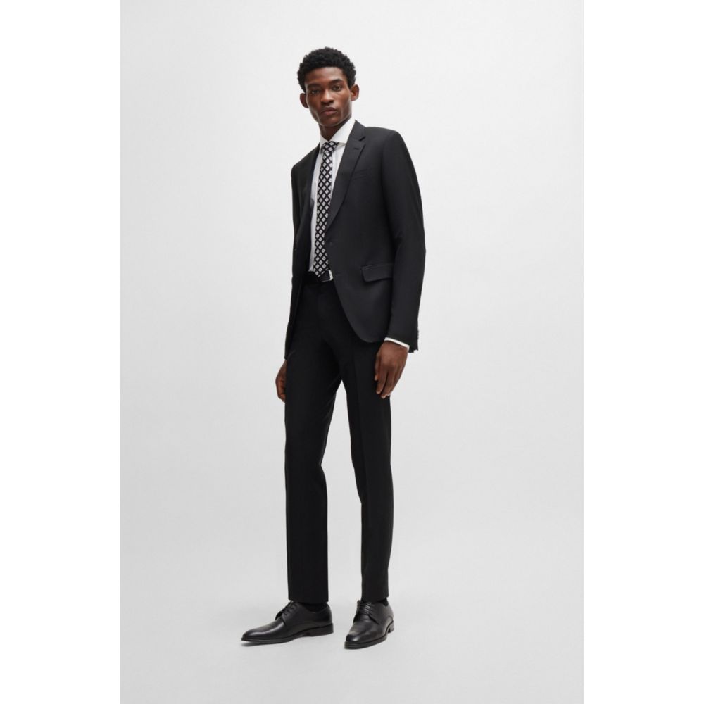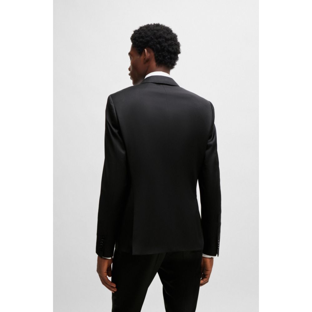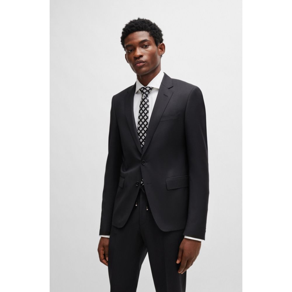 Однобортный пиджак из натуральной шерстяной саржи BOSS, черный 67 343₽