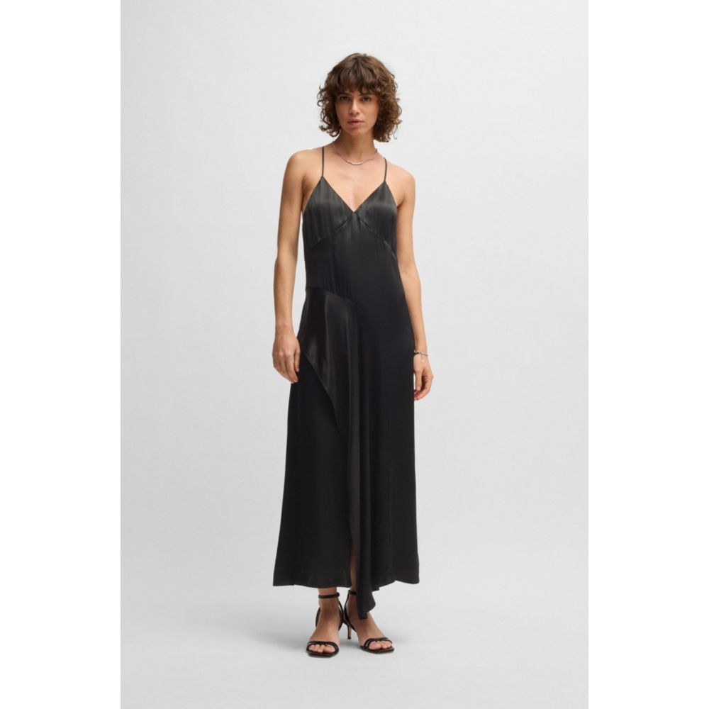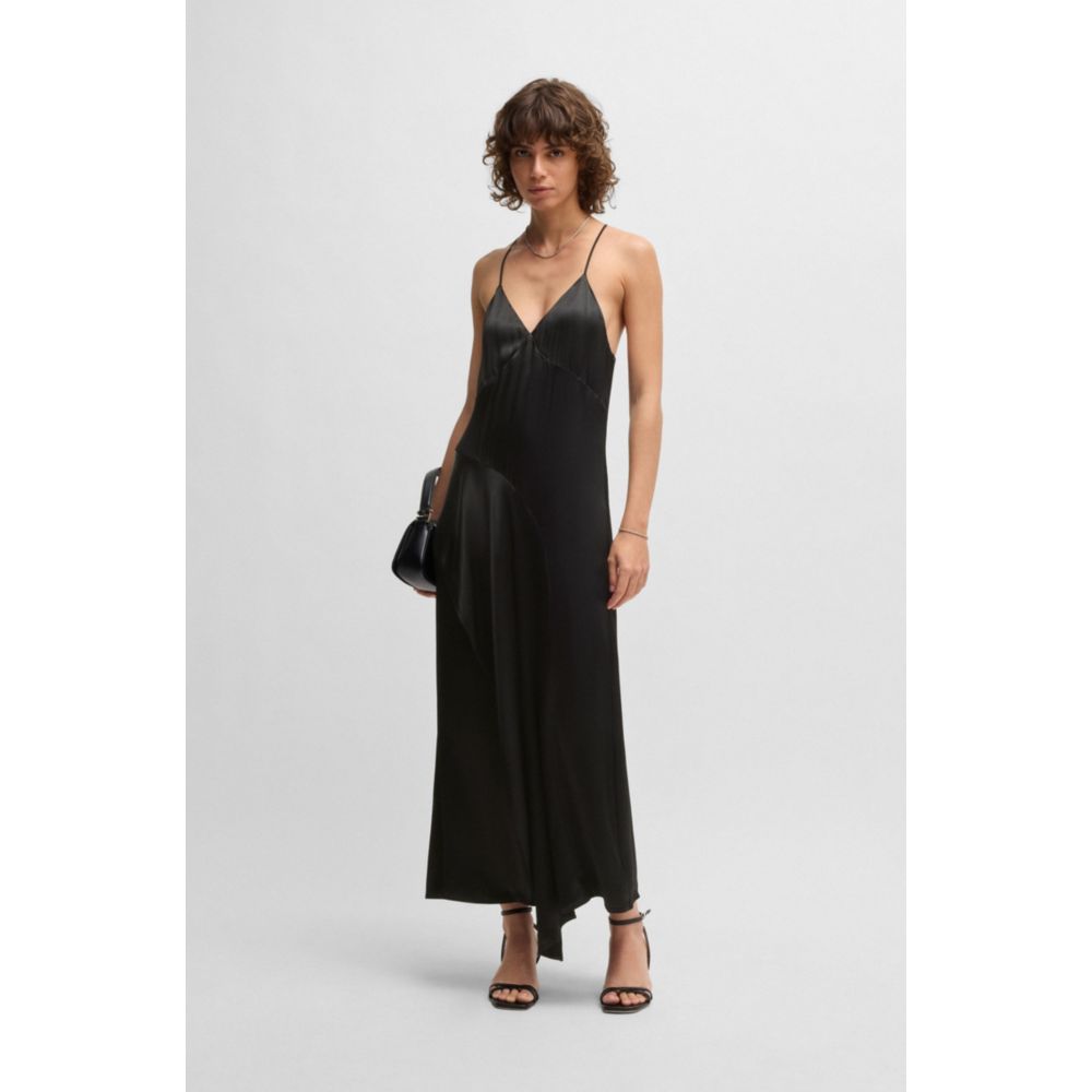 Это платье BOSS Womenswear с чистой застежкой-молнией создает струящийся силуэт. Это платье с струящейся водопадной деталью по юбке выполнено из мягкого сатина и дополнено тонкими бретельками. Создавайте современные официальные образы с этим изделием.