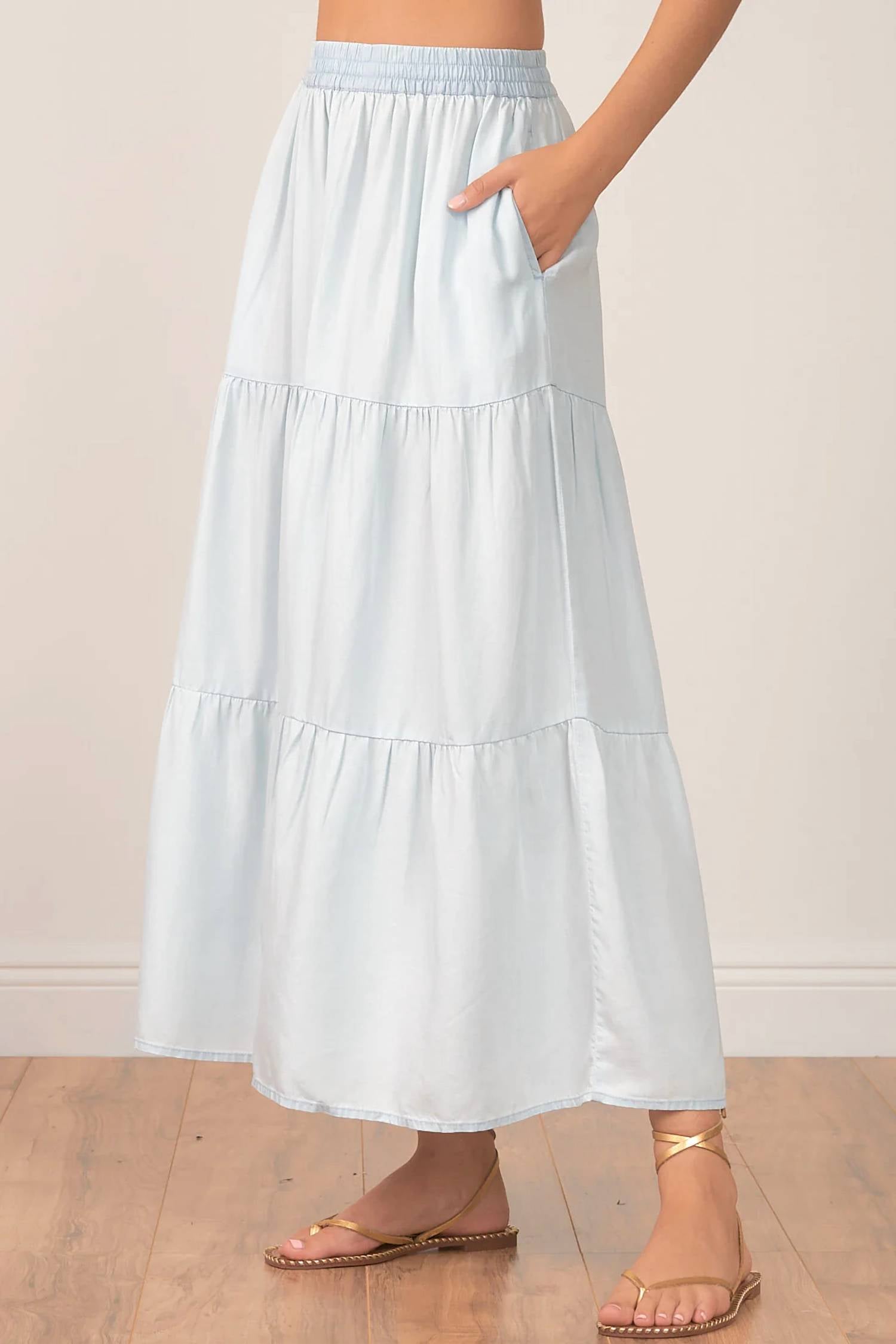 Эластичный пояс, многоуровневый дизайн и боковые карманы. Машинная стирка в холодной воде. 100% Tencel.