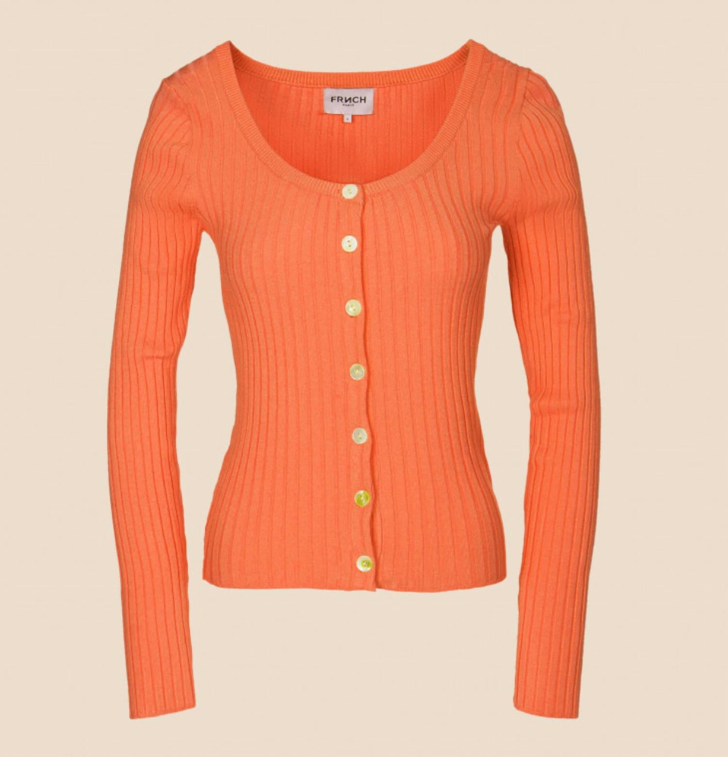 Топ с длинными рукавами и круглым вырезом от FRNCH с контрастной застежкой на пуговицы спереди из шелковистой широкой резинки. Длина 22 дюйма. 72% вискозы, 28% полиэстера. Легкая шелковистая резинка. Сделано в Китае. Стирать в холодной воде, сушить на горизонтальной поверхности.