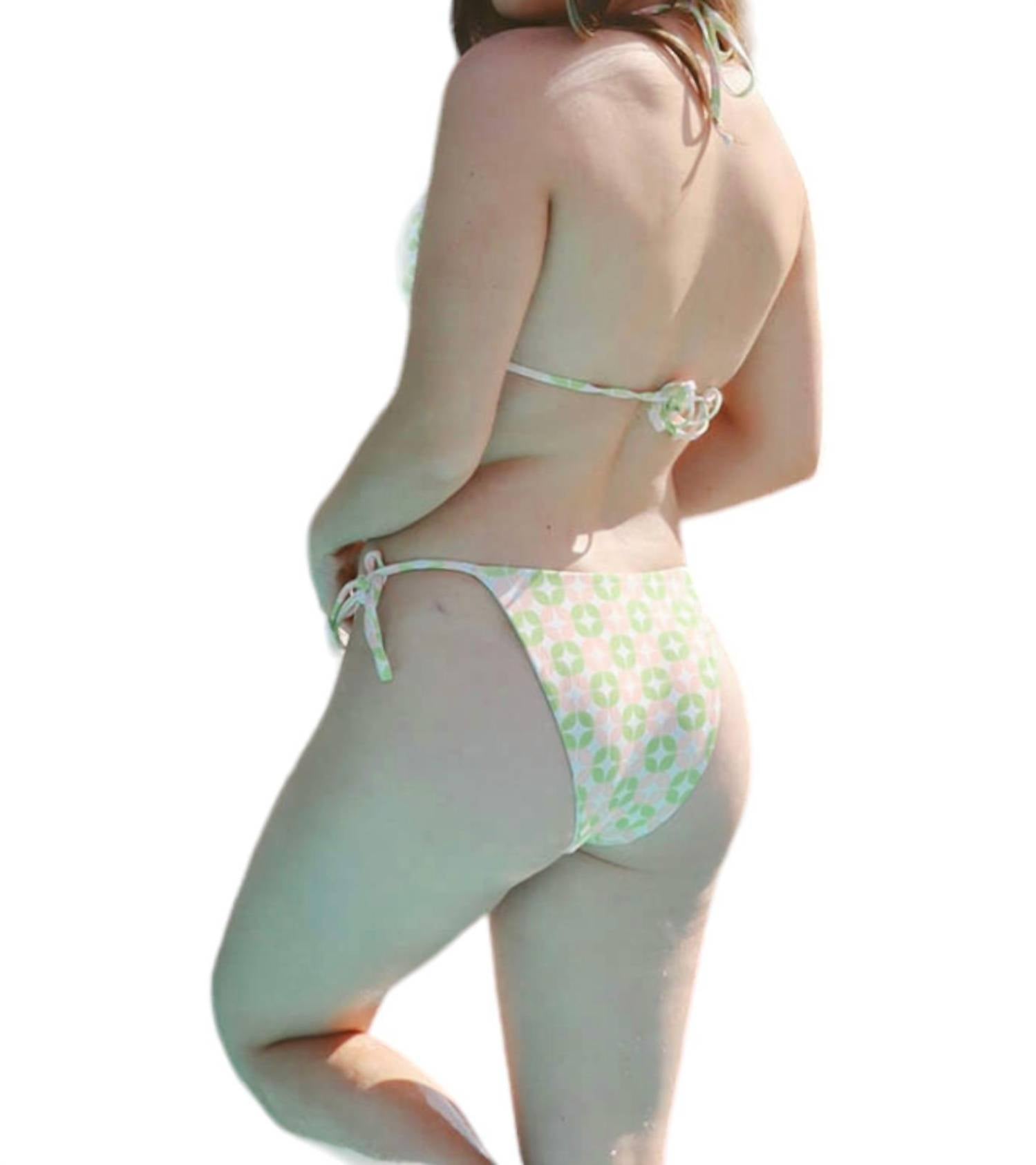 Треугольный бикини-топ. Идеально сидит с регулируемыми завязками. Идет размер в размер. 80% нейлон. 20% спандекс.