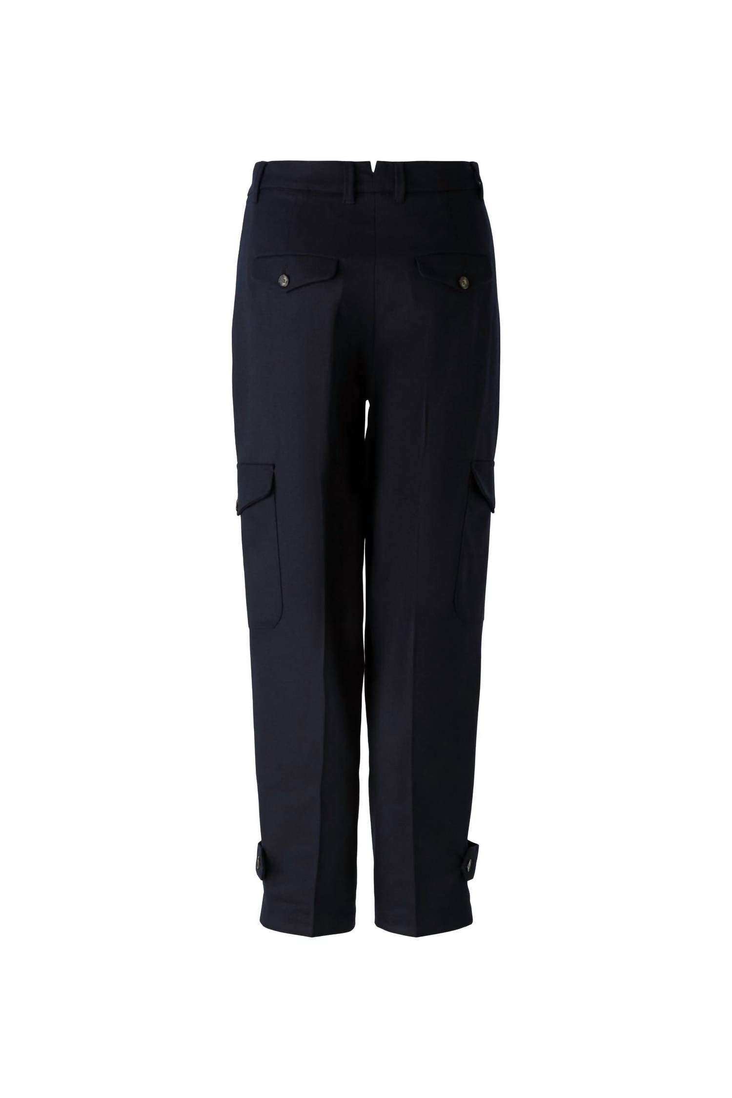 Высокая талия, укороченная длина, классический пояс со шлевками для ремня, застежка на пуговицу и молнию, боковые карманы, прорезные карманы сзади, которые можно застегнуть на пуговицу, накладные карманы-карго с клапаном и застежкой на пуговицу, зауженные штанины с декоративной застежкой и пуговицей. Свободный силуэт. 64% полиэстер, 34% вискоза, 2% эластан.
