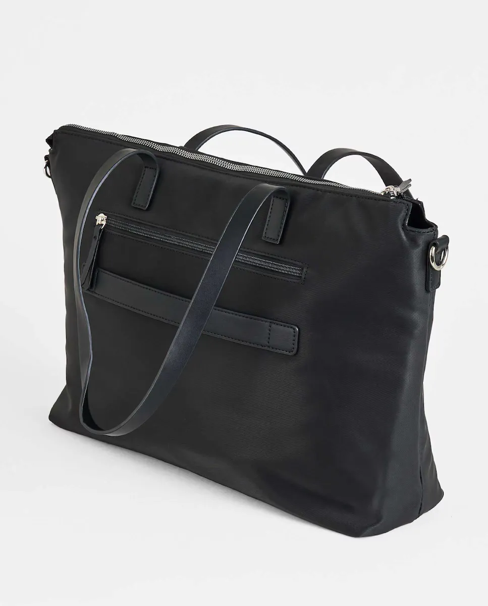 PACOMARTINEZ нейлоновая сумка для ноутбука. Чёрный. Застежка-молния. Просторный салон с мягким отсеком, для ноутбука или планшета до 15 дюймов. Погоны. Два передних кармана и один задний, с застежкой-молнией. В комплект входит длинная съемная и выдвижная ручка. Он состоит из ручки для тележки для чемодана. Идеально подходит для работы в офисе, университете или на работе.