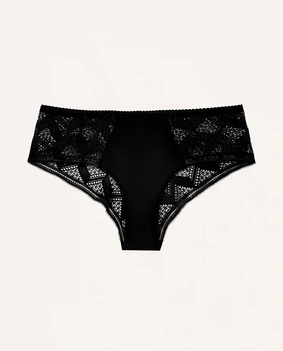 Кюлоты с лицевой стороны из непрозрачной микрофибры. Геометрическое кружево по бокам и сзади. Интимная хлопковая зона. Коллекция Signature. По гигиеническим соображениям этот товар не подлежит обмену или возврату.