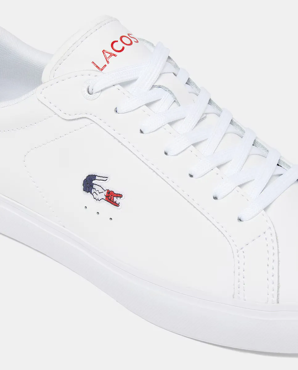 Powercourt, современные кроссовки на шнуровке с универсальным шармом. Кожаный верх имеет плоскую полированную отделку, дополненную контрастным крокодилом для создания городского стиля. Вышитый бренд, подчеркивающий спортивное наследие Lacoste. Кожаный верх. Ортолитовая стелька, 20% переработанных семян. Вышитая нашивка из крокодила. Резиновая подошва.