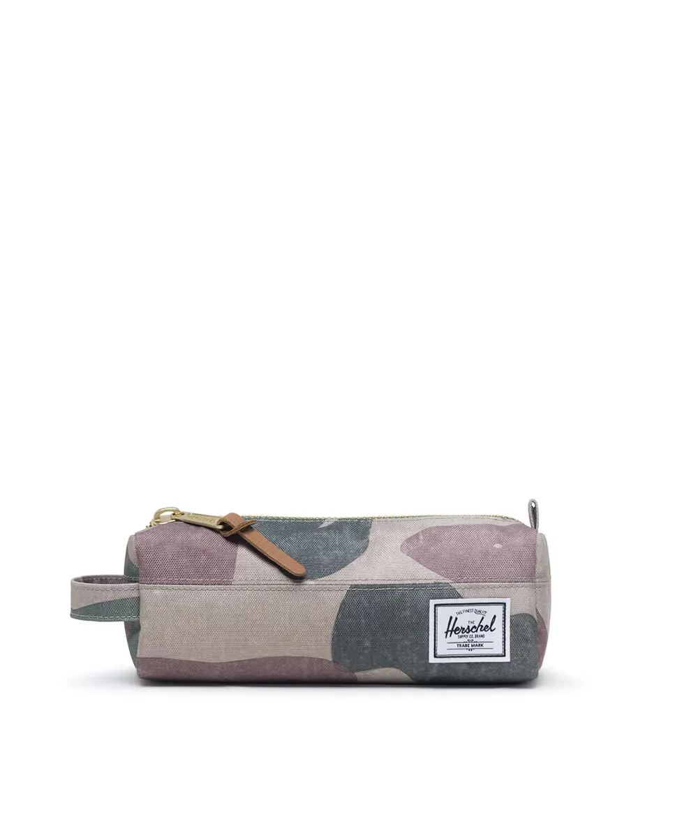 Вдохновленный классическим пеналом, чехол Settlement оснащен открытой металлической молнией и удобной ручкой для переноски.