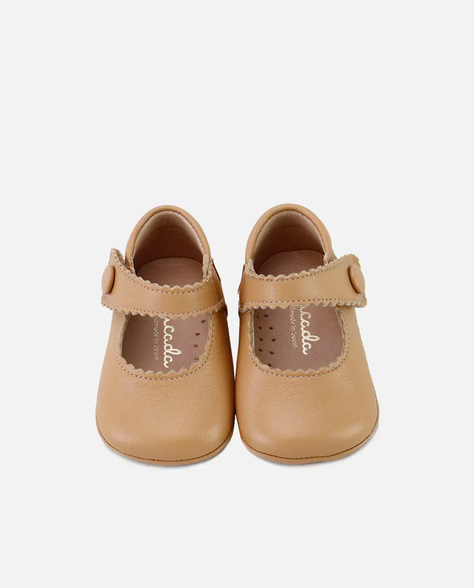 Тапочка типа Baby Mary Janes с гребешком из коллекции CUCADA. Идеальный подарок. Изготовлен из очень мягкой воловьей кожи и с дышащей кожаной подкладкой, идеально подходит для ношения с носками или без них. Клейкая застежка для адаптации к любой ноге. Мягкая подошва из той же кожи, для малышей, которые находятся в колясках или начинают ползать. Разработан и изготовлен вручную в Аликанте из высококачественных материалов и с нашей специальной колодкой для младенцев, широкой спереди, чтобы освободить место для их маленьких пальчиков. Они носят свой реальный размер. Если это подарок для новорожденного, выбирайте размеры 16 или 17, а также размеры 18-19 от 6 месяцев. Ручная работа в Испании с любовью.