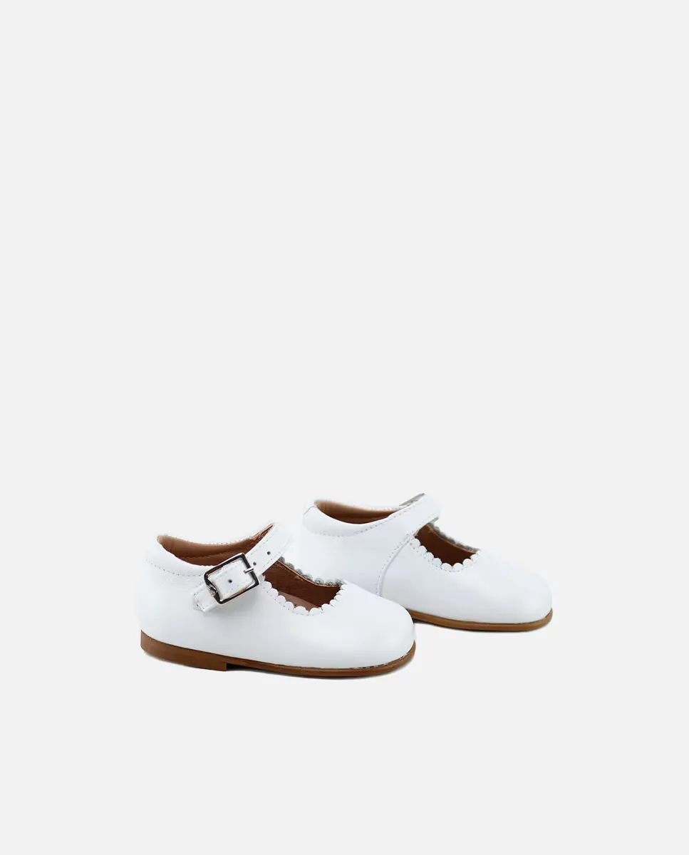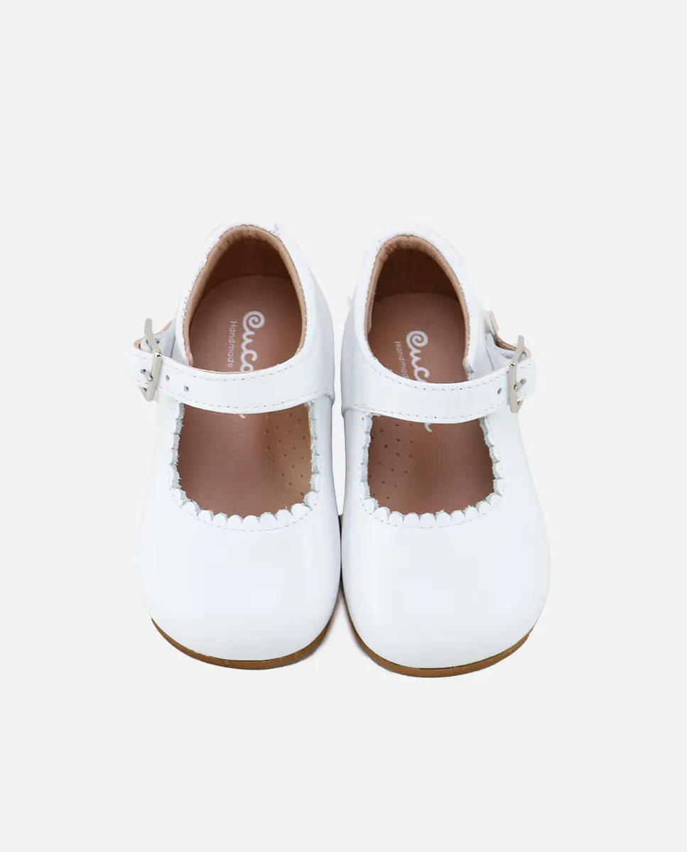 Классическая Мэри Джейн. Нет необходимости добавлять больше описания к этой модели нашего EliClassics, так как ее имидж говорит сам за себя. В этом сезоне он возвращается в классических цветах и в очень новых и весенних тонах. Говорят, что это идеальная модель, но мы ее улучшили :) Обувь Mercedes с фестончатой окантовкой из коллекции CUCADA, которая сопровождает ноги с 17 размера, пока они обретают уверенность при ходьбе, так что постепенно укрепляются и развиваются свободно, защищая их на каждом шагу. Доступны в нескольких вариантах качественный, дышащий и очень мягкий козий мех и подкладка, чтобы их можно было носить как с носками, так и без них. Застежка на пряжку. Спроектированный и изготовленный в Вильене, со стилем и с сохранением всех важных характеристик посадки и стабильности здоровой обуви для первых ходоков. Широкая колодка оставляет полную свободу вашим маленьким пальчикам и плоская подошва из резины с эффектом кожи, нескользящая и гибкая. Они носят свой реальный размер. Ручная работа в Испании с любовью.