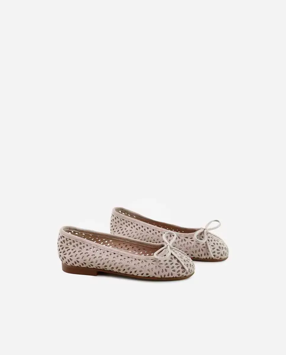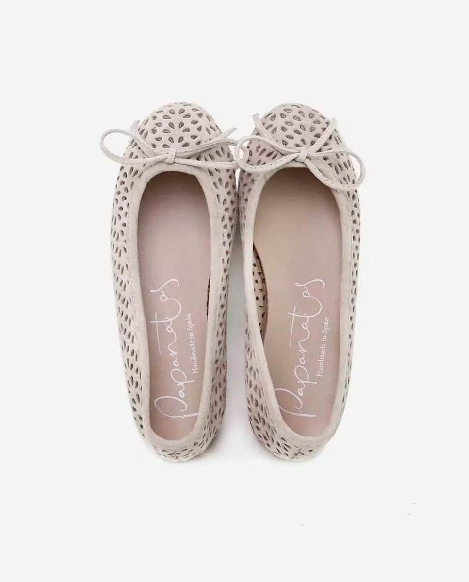 Произведение искусства, по которому можно топтаться по асфальту. Перфорированные замшевые балерины из нашей коллекции PAPANATAS, которыми одеваются ноги девочек и мам. Идеально подходит для совместного использования модели. Мы любим их во всем, от церемонии до повседневной носки. Качественная обувь – это инвестиция в устойчивое развитие. Выполнен из овечьей замши с дышащей кожаной подошвой. После надевания они идеально прилегают к стопе. Спроектированный и изготовленный вручную в Вильене с использованием высококачественных материалов и с нашей балериной колодкой, который так высоко ценится за свой стиль и за сохранение всех характеристик посадки и стабильности, способствуя безопасности и уверенности в шаге девушек и женщин. С тонкой, гибкой и нескользящей подошвой, но устойчивой к любой поверхности. Подойдите мало, выбирайте на один размер больше обычного. Ручная работа в Испании с любовью.