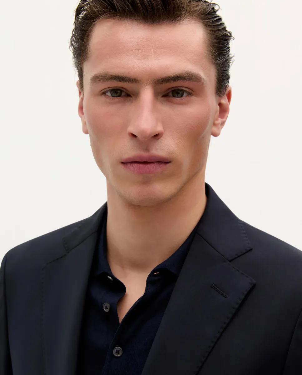 Блейзер из 100% шерсти. Обычная посадка. Застежка на пуговицы и боковые карманы. Внутренняя подкладка.