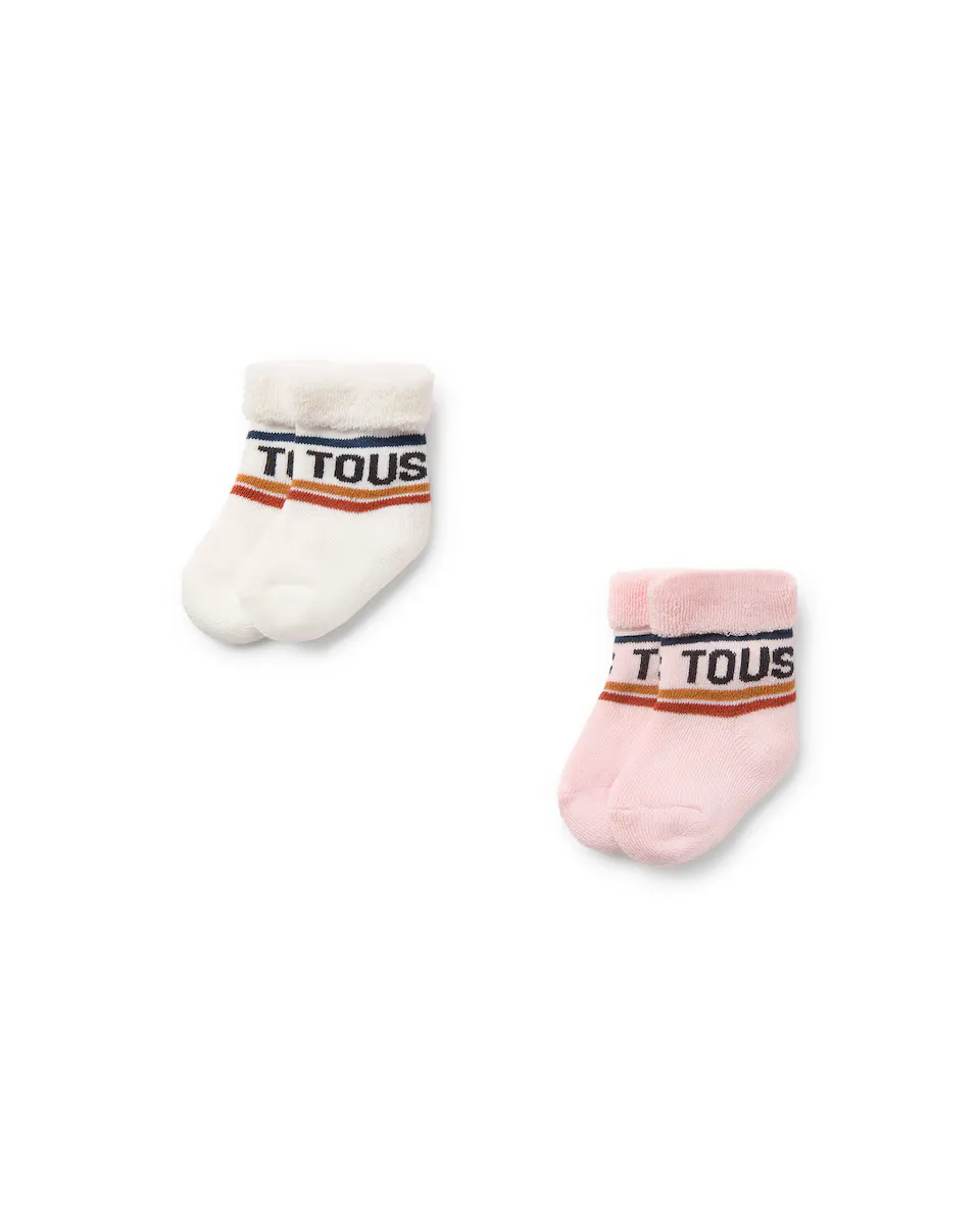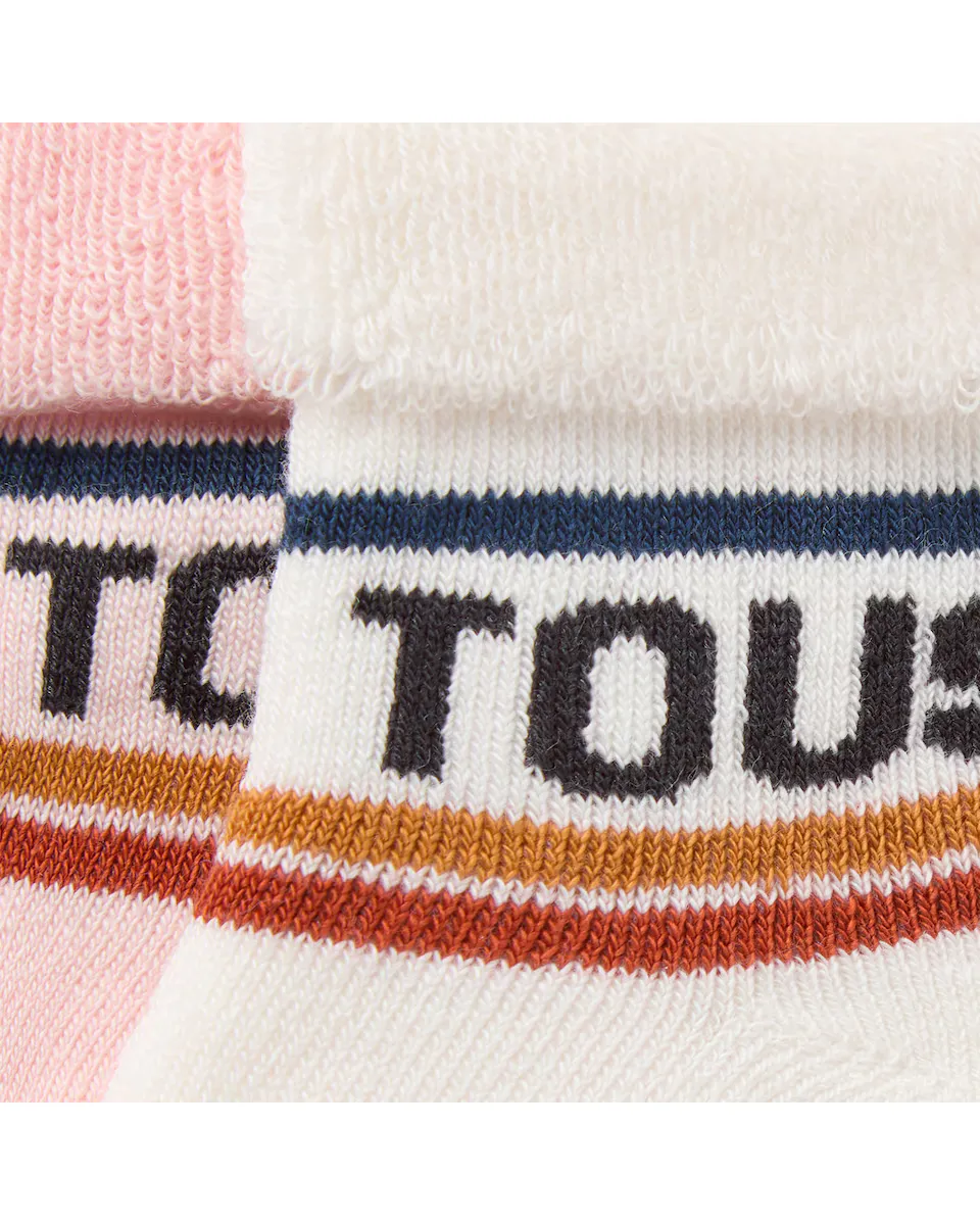 Упакуйте 2 пары детских носков Tous Baby в жаккаре с логотипом TOUS и полосками. Изготовлен из эластана, чтобы оставаться плотно и комфортно на ноге ребенка.