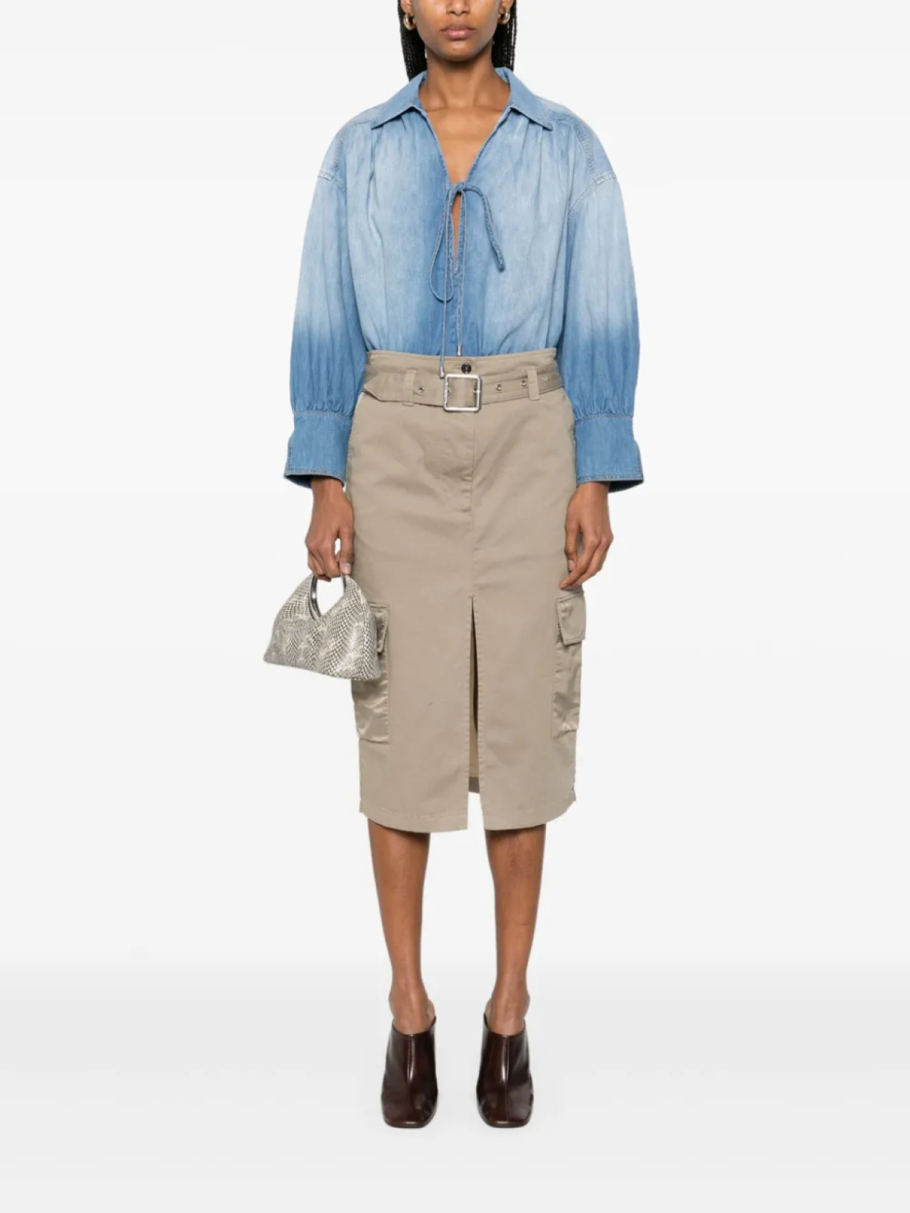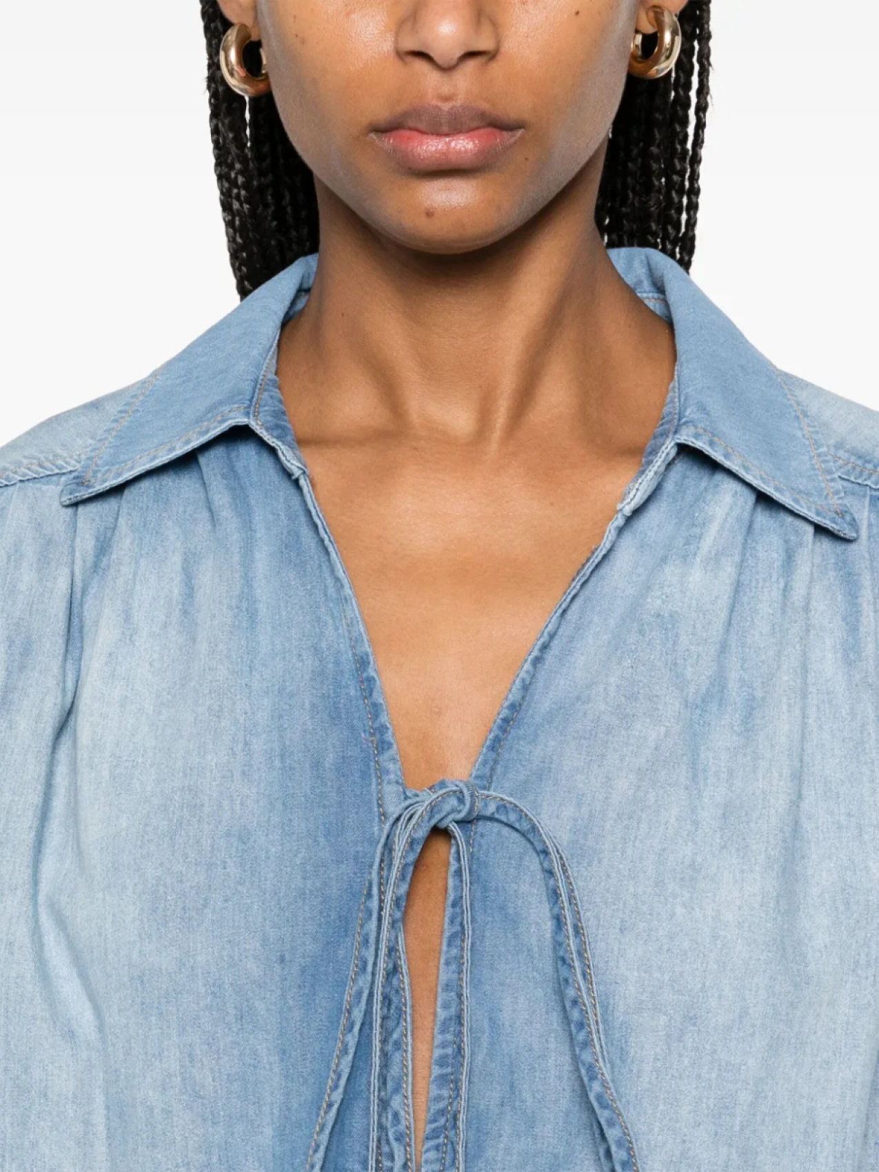 Небесно-голубой, завязывается спереди, V-образный вырез, отложной воротник, длинные рукава