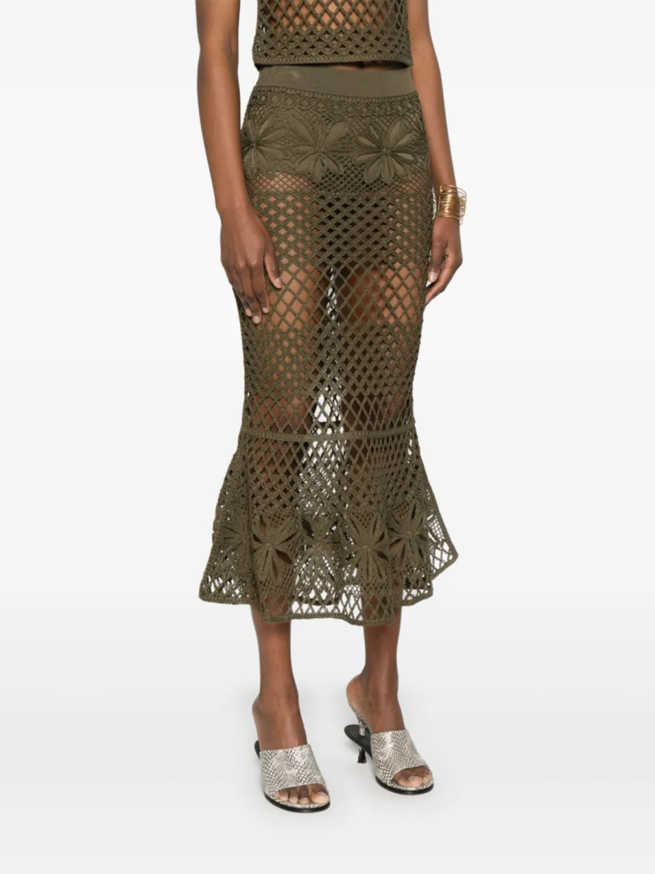 Юбка миди крючком PINKO, зеленый