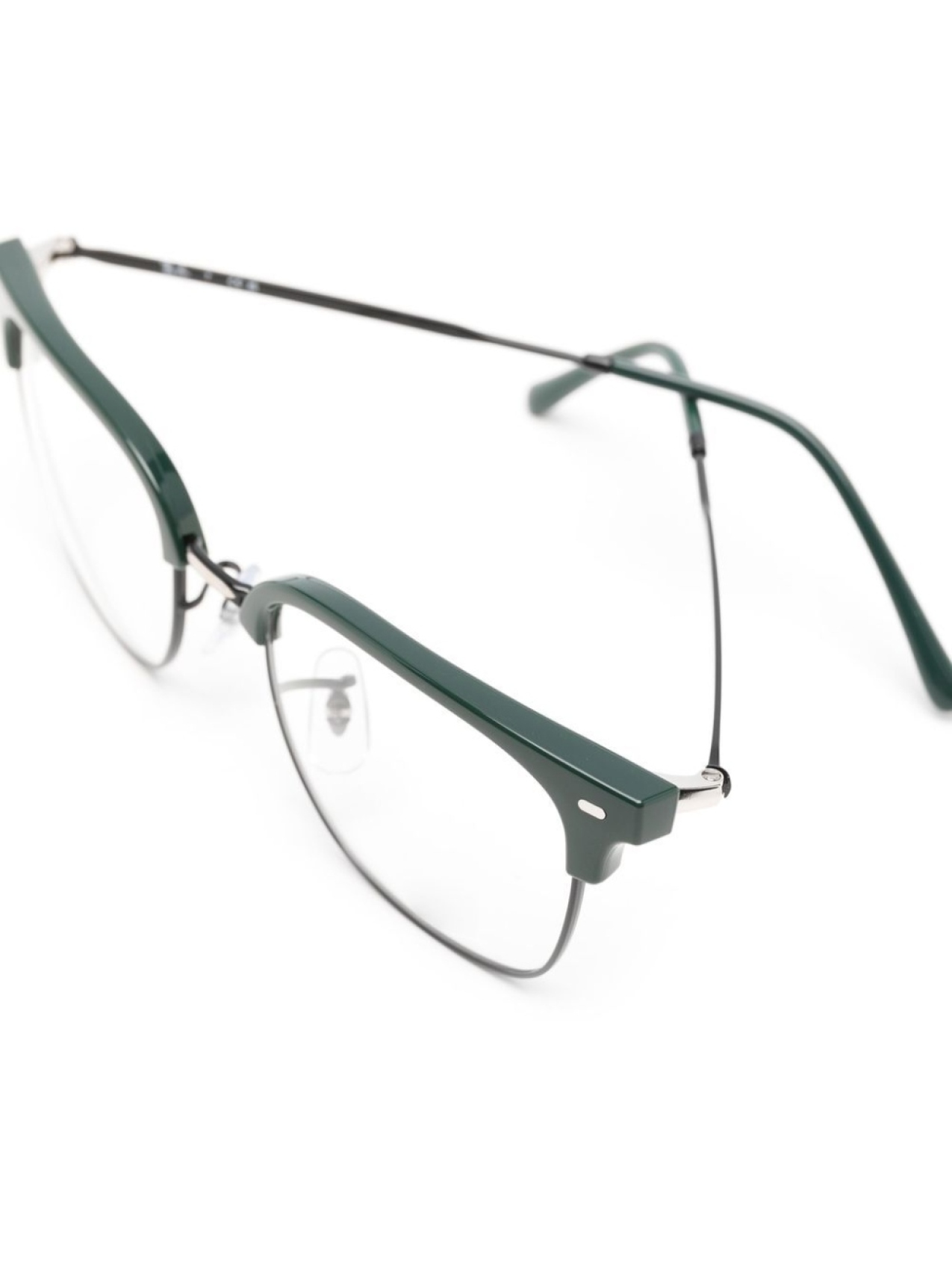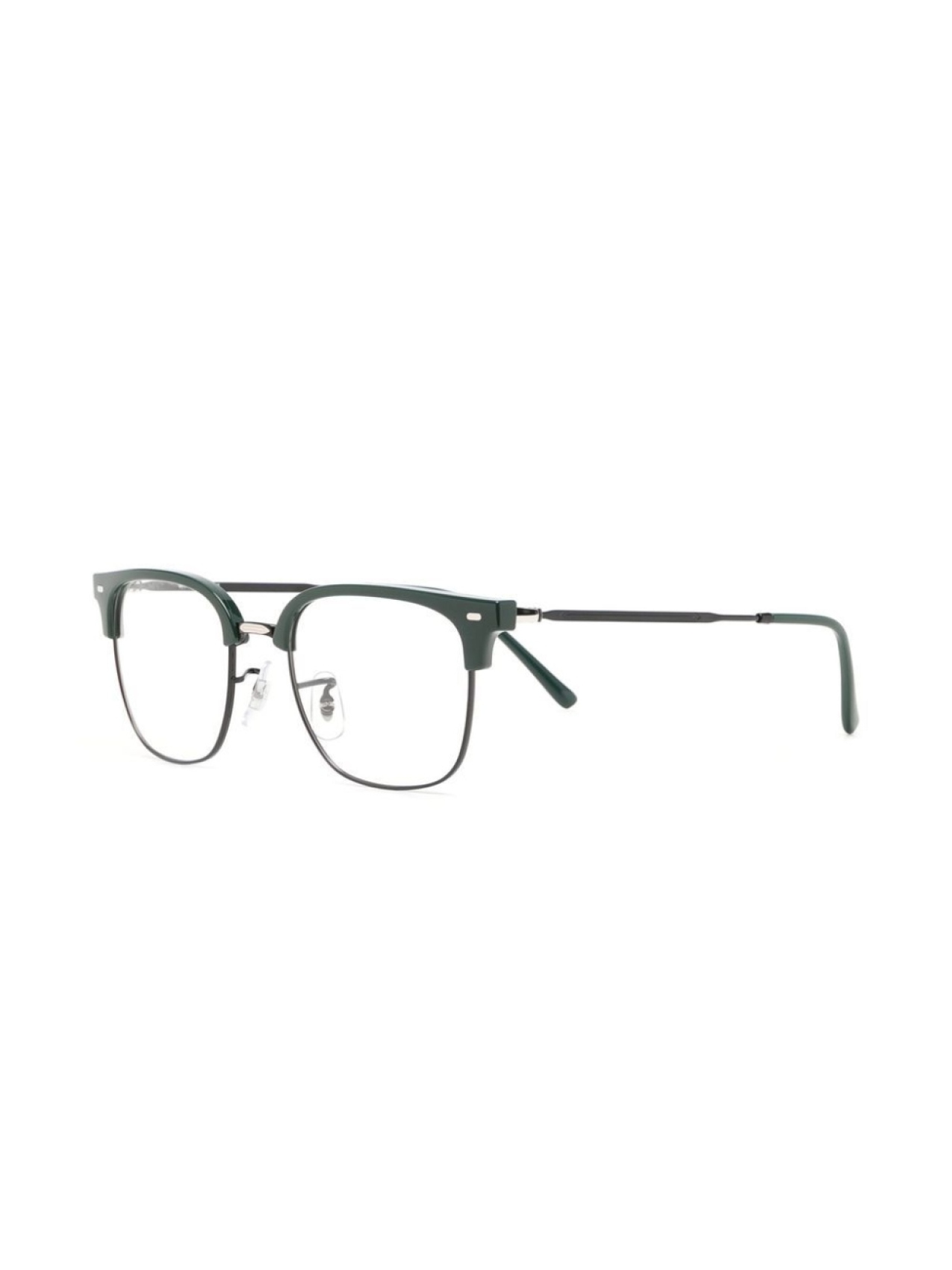 Насыщенный зеленый, ацетат, металл, серебристая фурнитура, квадратная оправа, прозрачные линзы, носоупоры, прямые дужки и дужки с закругленными концами. В комплект входит защитный чехол для очков. Обратите внимание, что на FARFETCH продаются оправы с линзами без диоптрий.