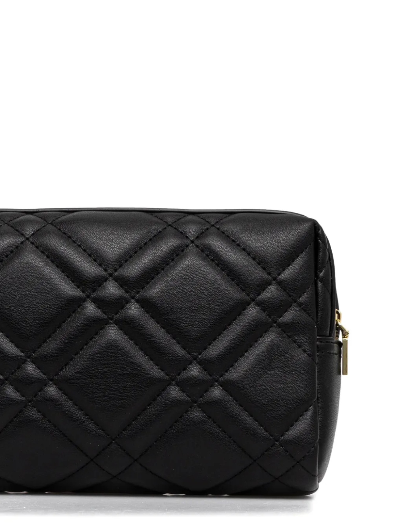 Черное по периметру застегивается на молнию, основное отделение украшено логотипом, ромбовидной стежкой