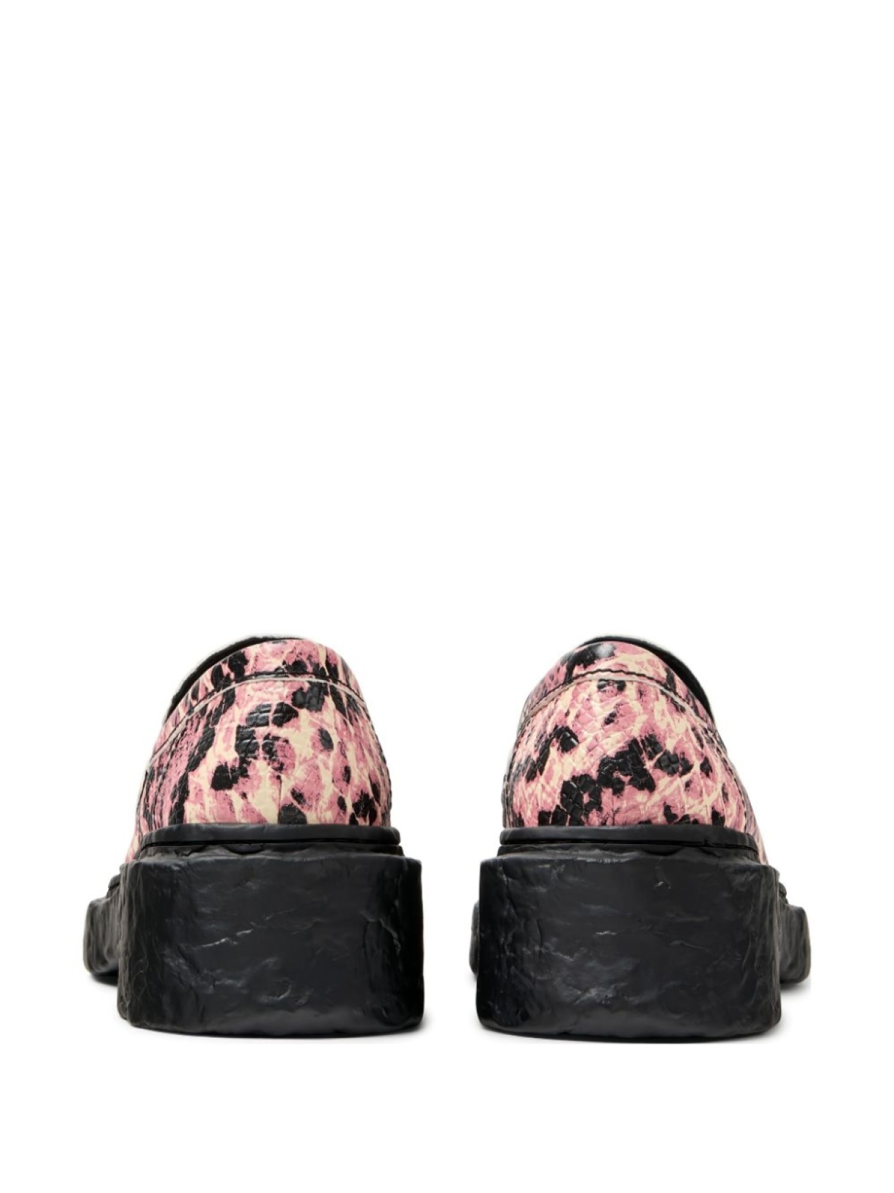 Светло-розовый, кожаная стелька с логотипом, плоская резиновая подошва, прорези на язычке, эффект змеиной кожи