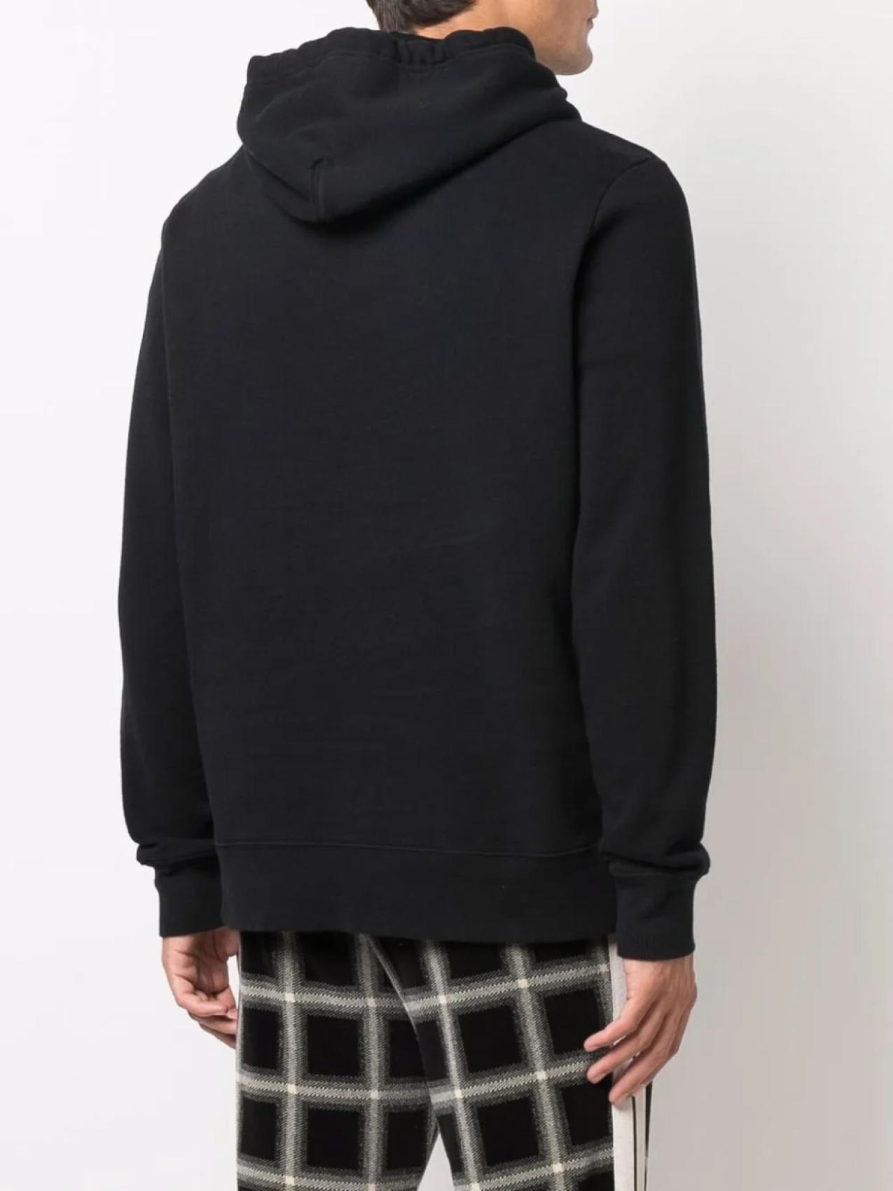 Логотип спереди, затягивающийся на шнурок капюшон, длинные рукава, карман-муфта и прямой подол. Цвет: черный.