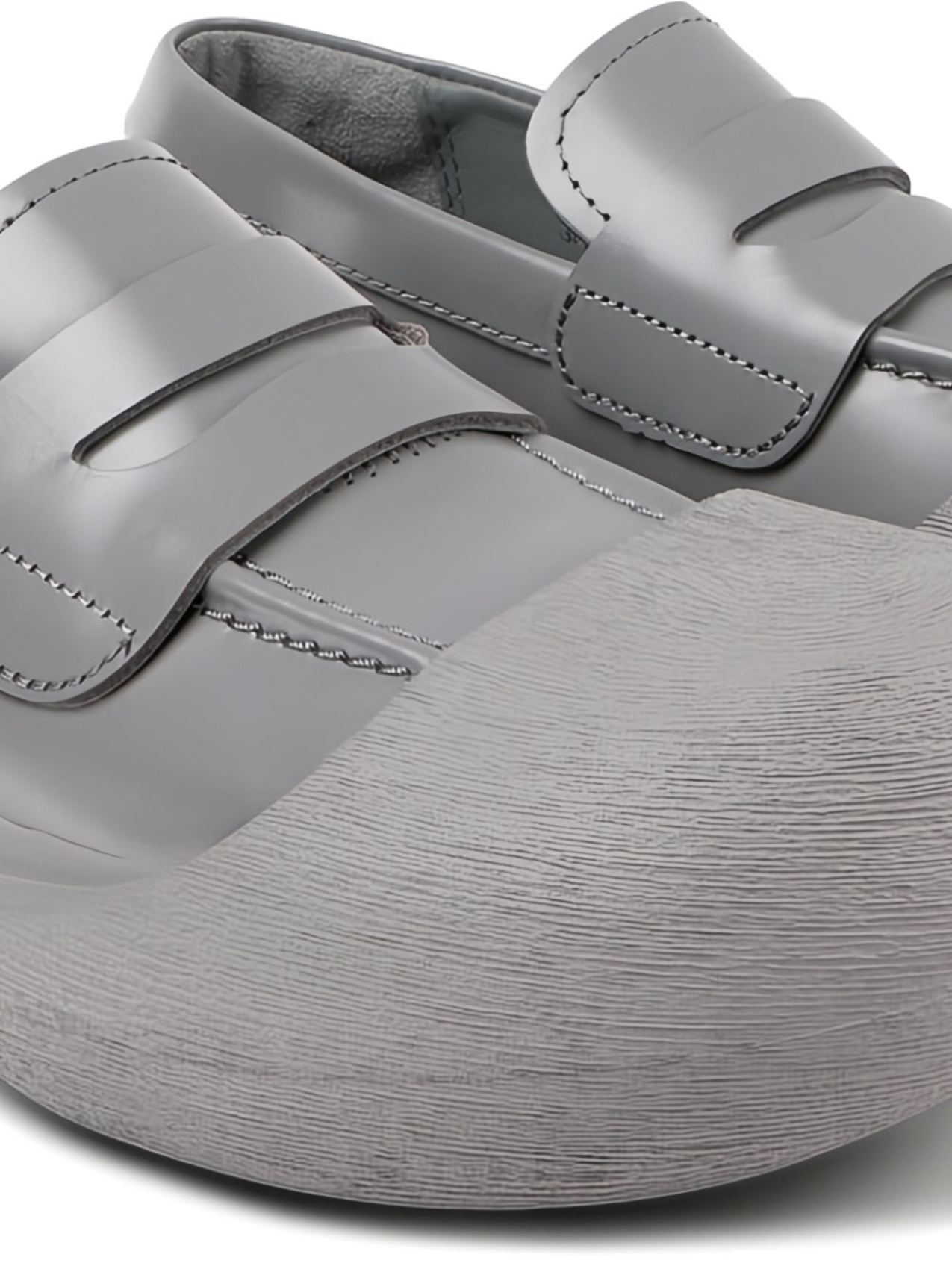 Серый, прорези на язычке, закругленный носок, массивная резиновая подошва
