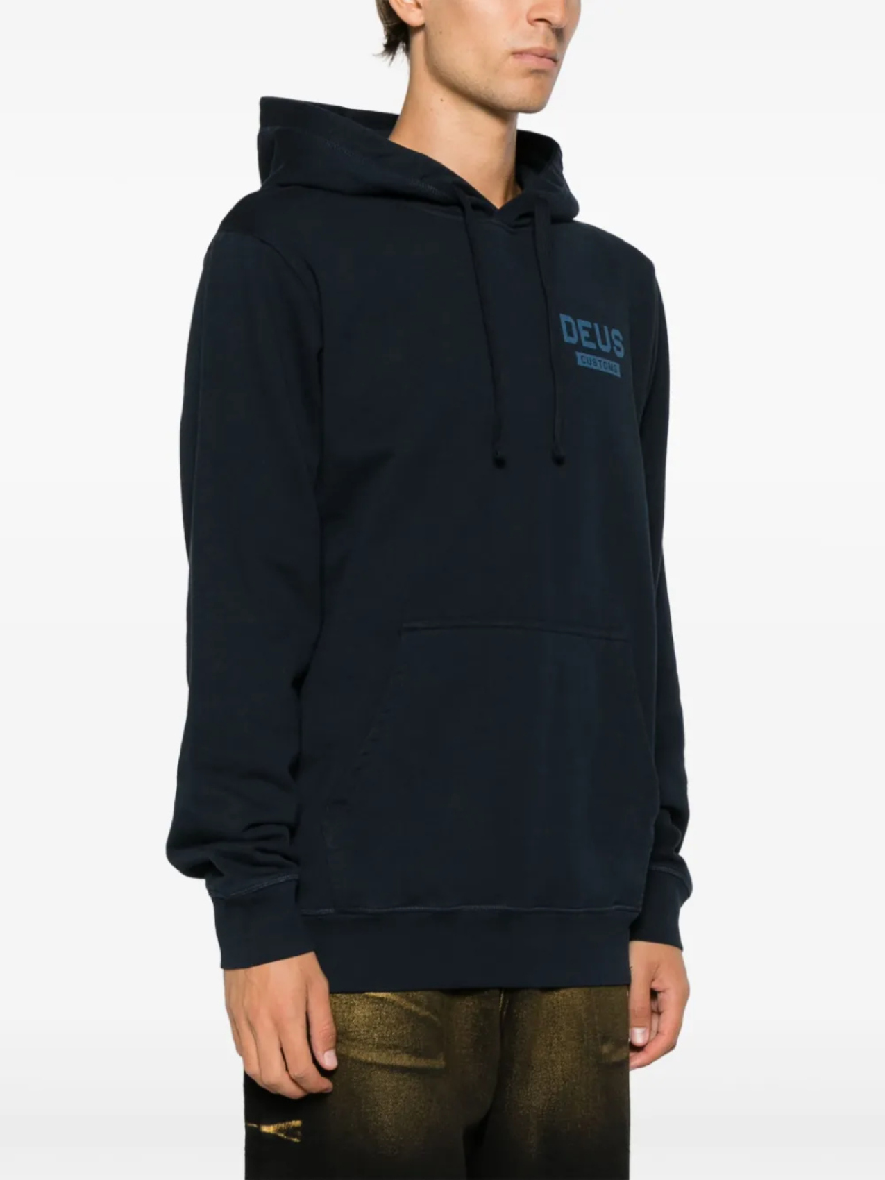 Темно-синий, органический хлопок, принт с логотипом на груди, принт с логотипом сзади, затягивающийся на шнурок капюшон, длинные рукава, карман-муфта, маленькая подвеска с логотипом и прямой подол. Узнать больше о том, какие товары получают отметку «Ответственный выбор», можно из материала «Как мы оцениваем экологичность и этичность».