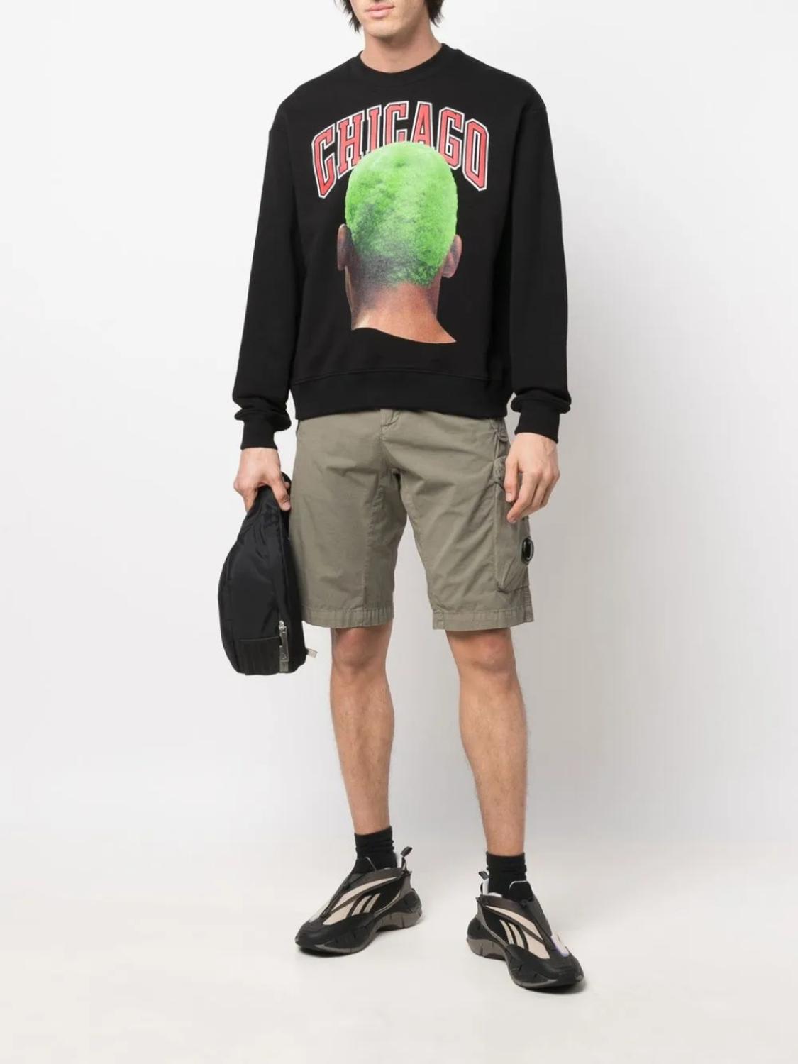 Графичный принт спереди, принт с логотипом сзади, круглый вырез и длинные рукава. Цвет: черный.