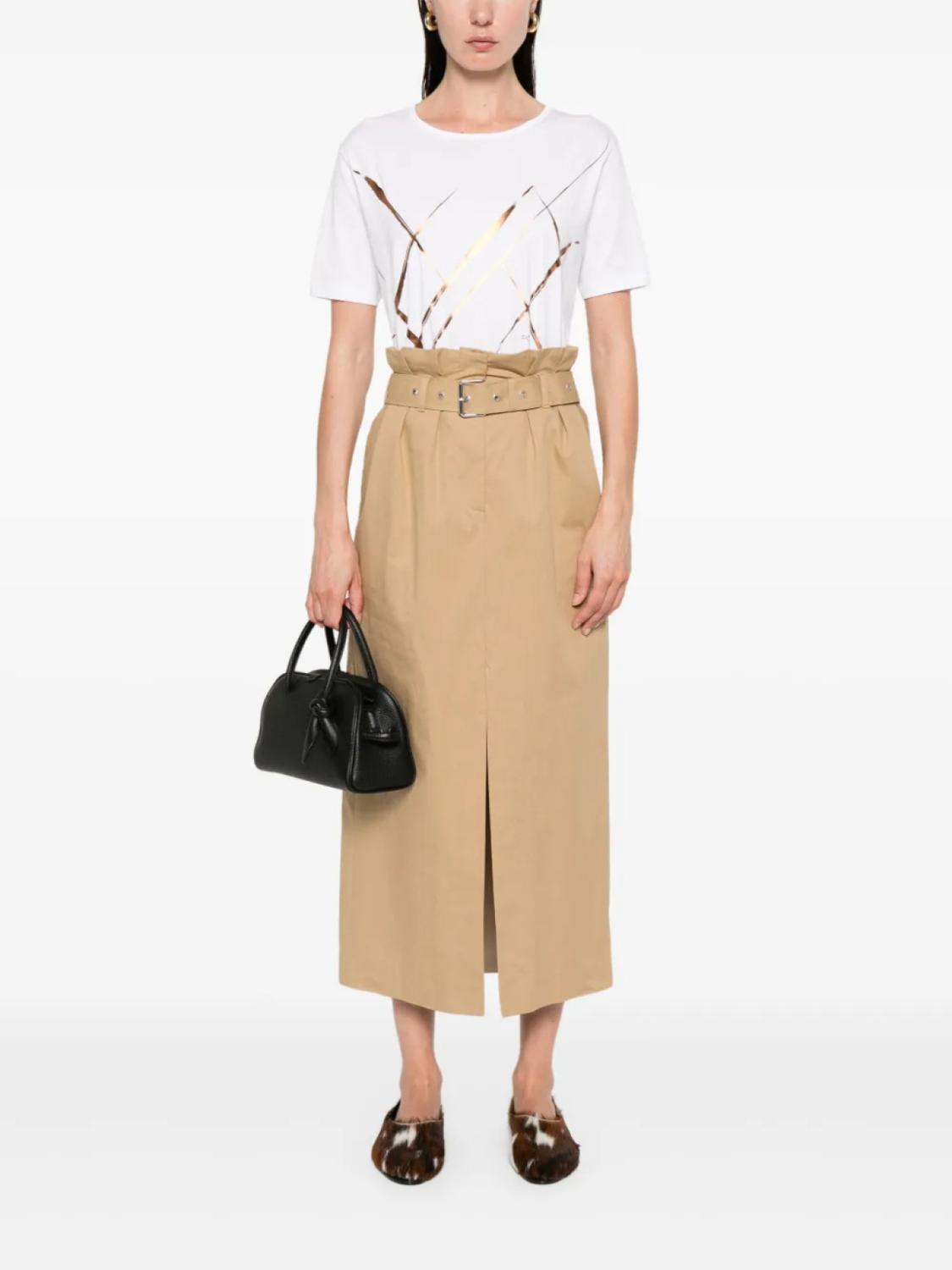 Белый логотип с принтом спереди, круглый вырез горловины, короткие рукава
