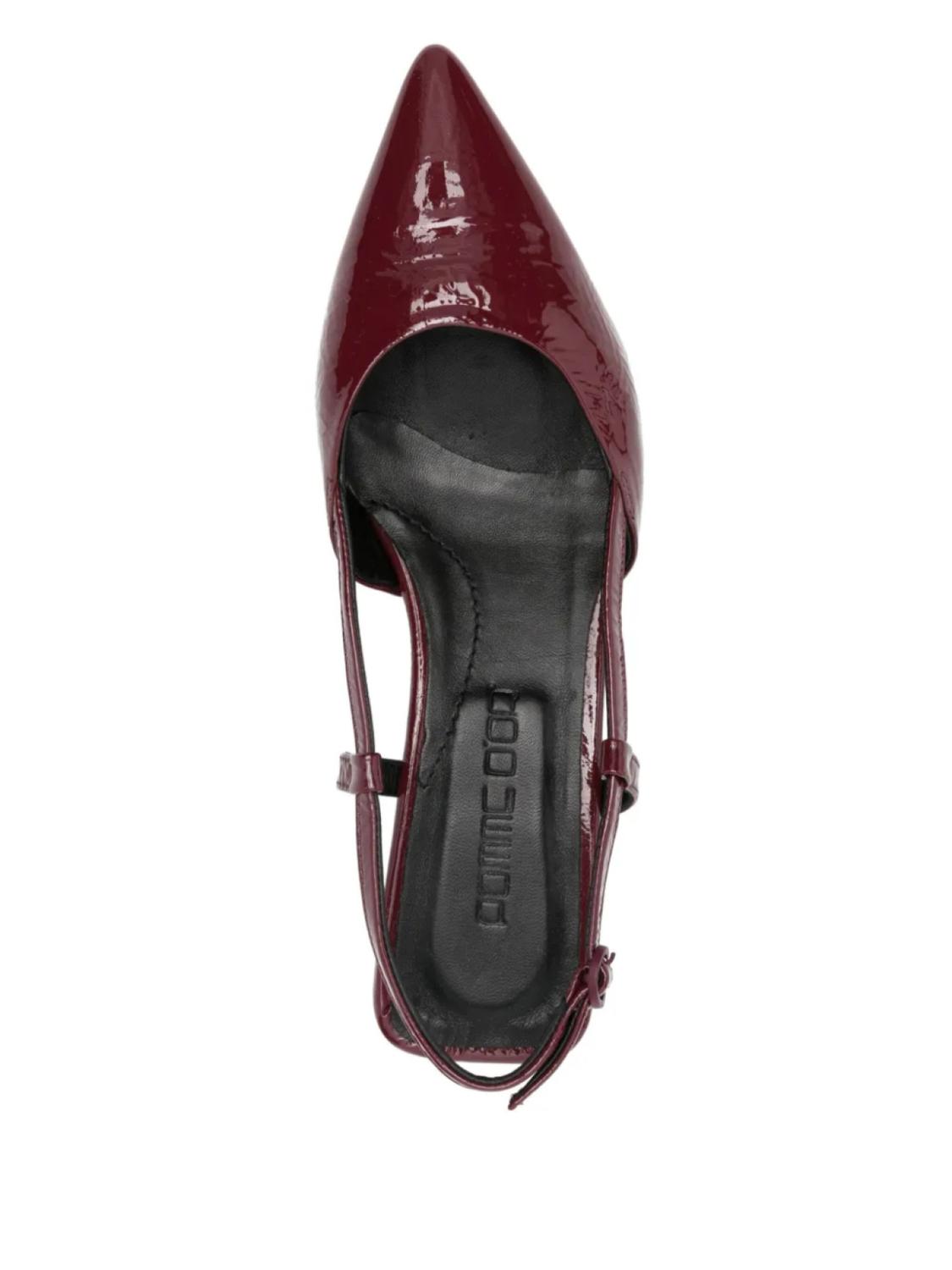 Бордово-красная застежка на пряжке, ремешок на пятке, фирменная кожаная стелька, вырезы, острый носок