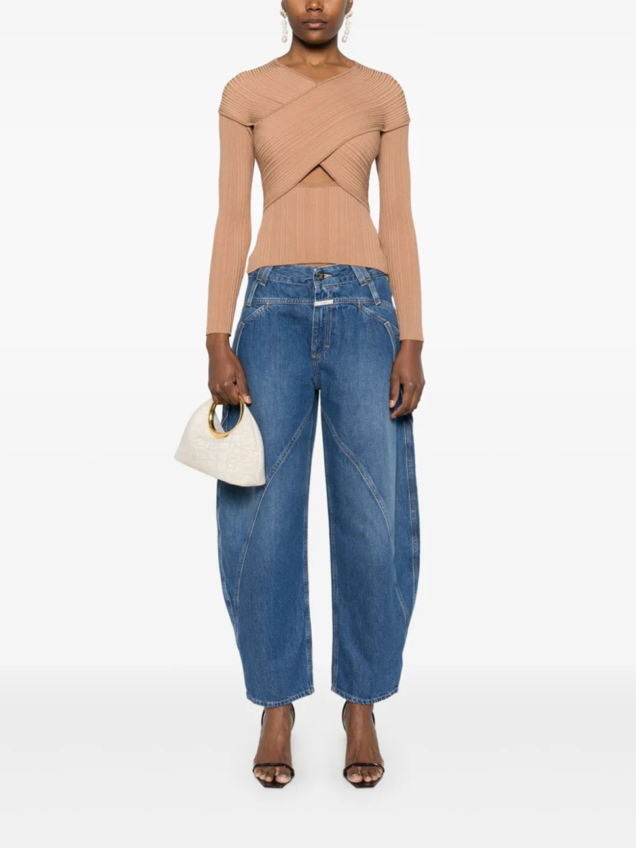 Ребристый топ с запахом Self-Portrait, коричневый