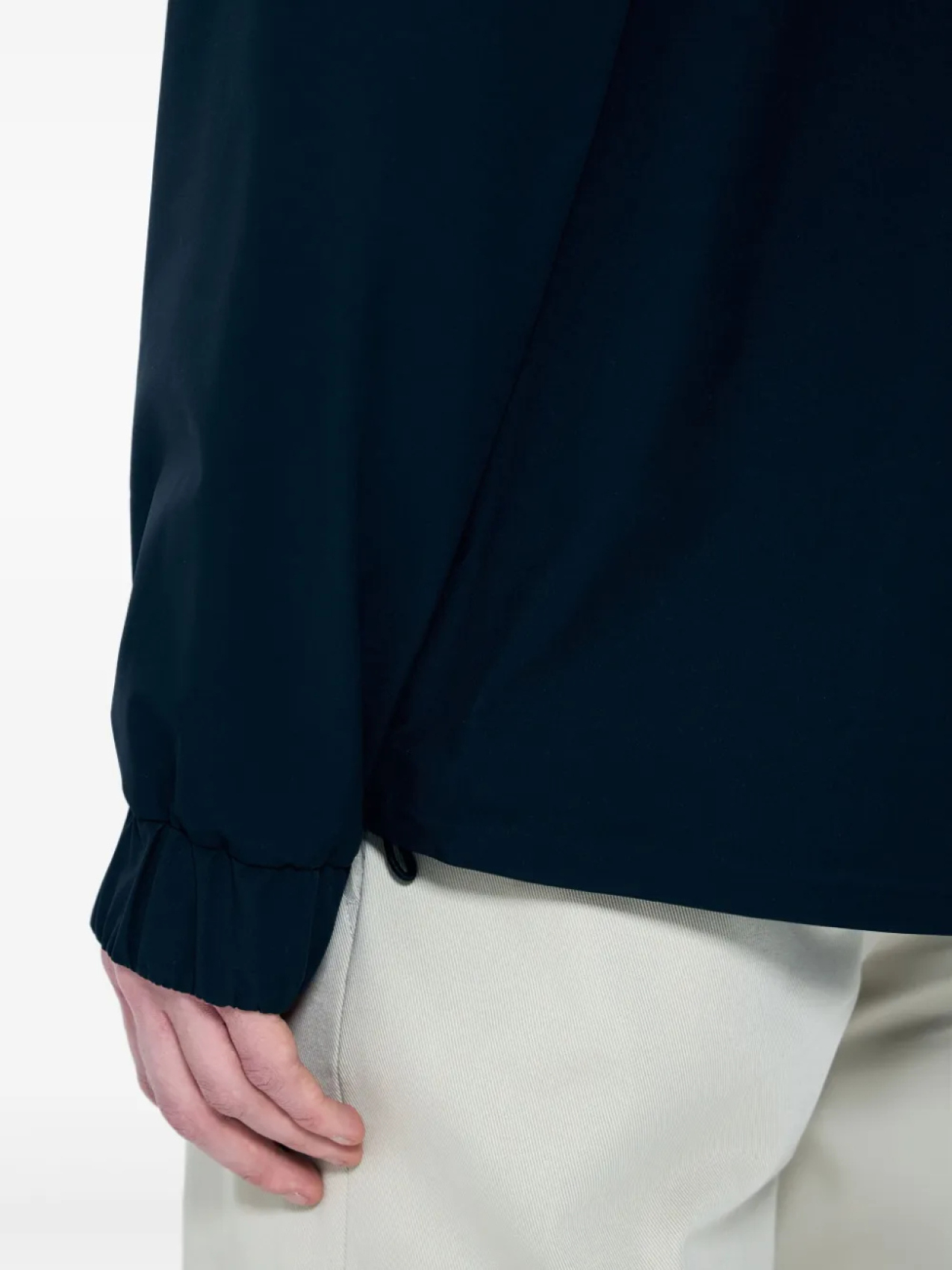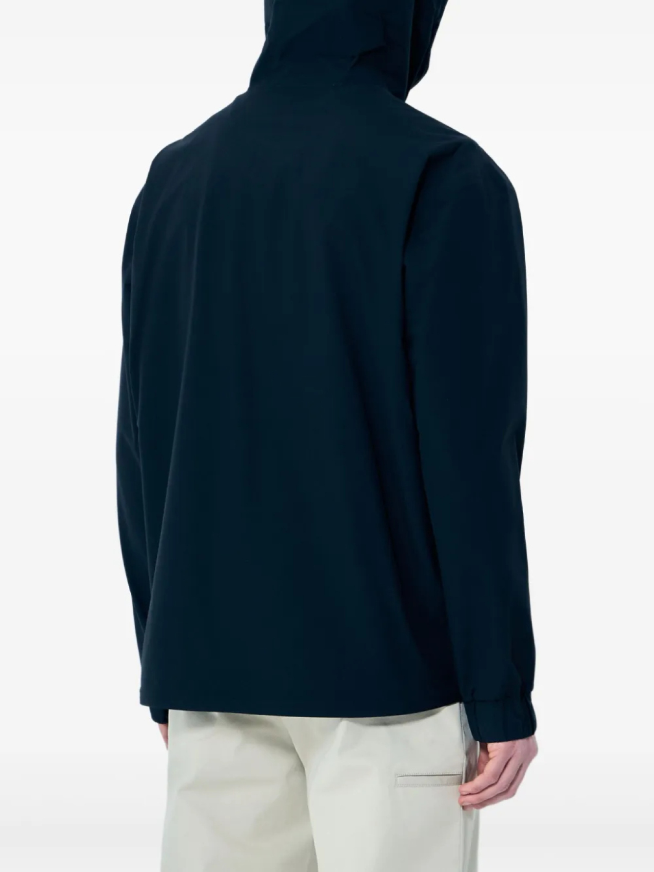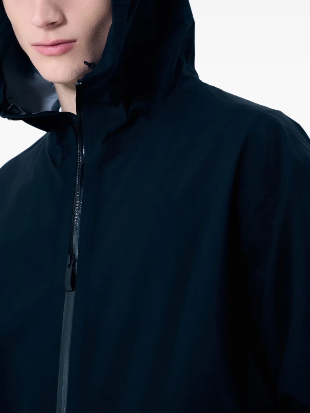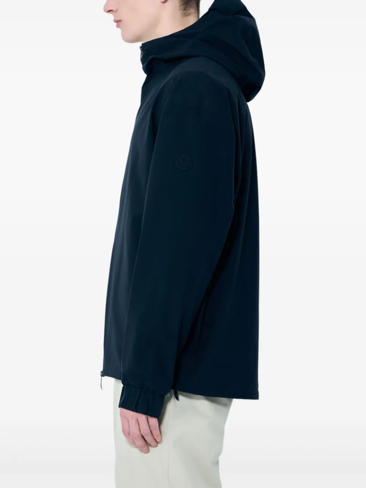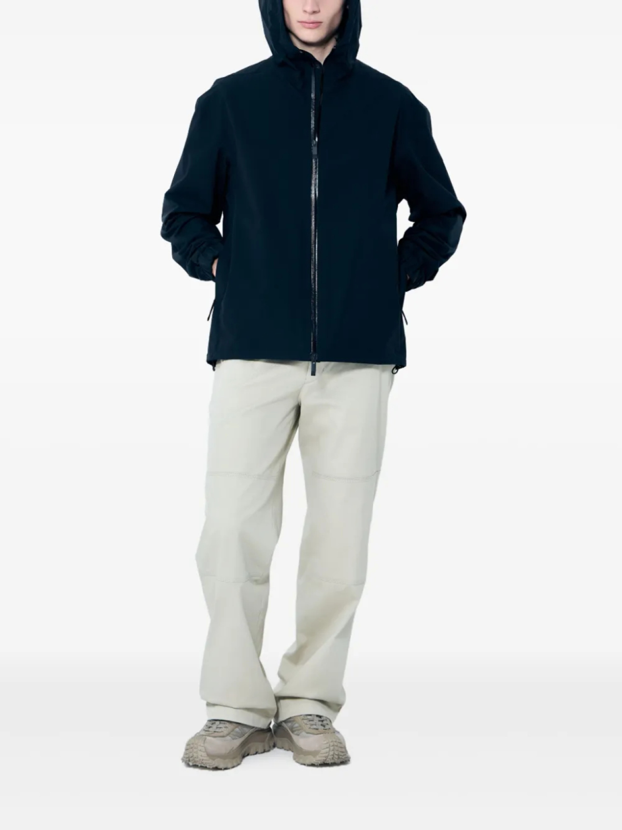Черная двухсторонняя застежка-молния спереди, два боковых кармана на молнии, нашивка с логотипом на рукаве, классический капюшон
