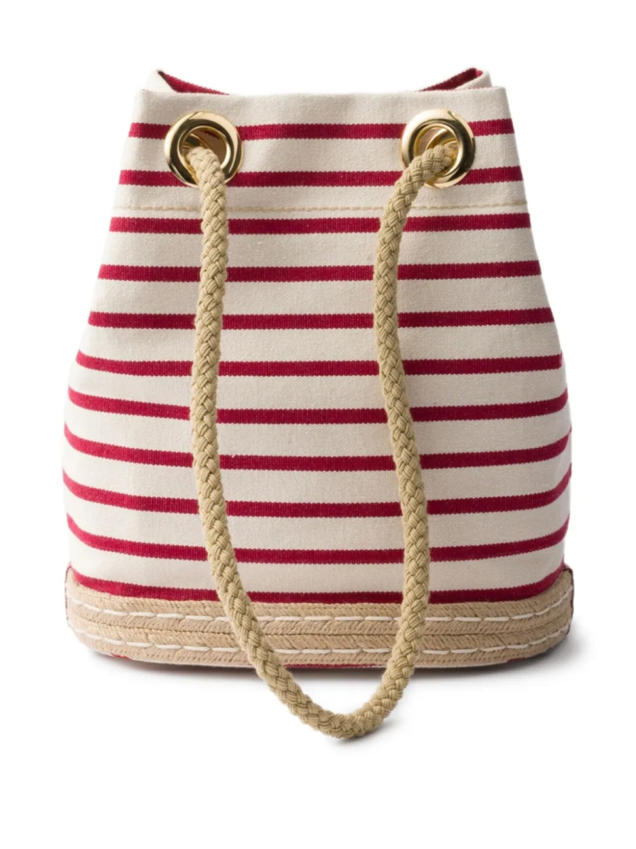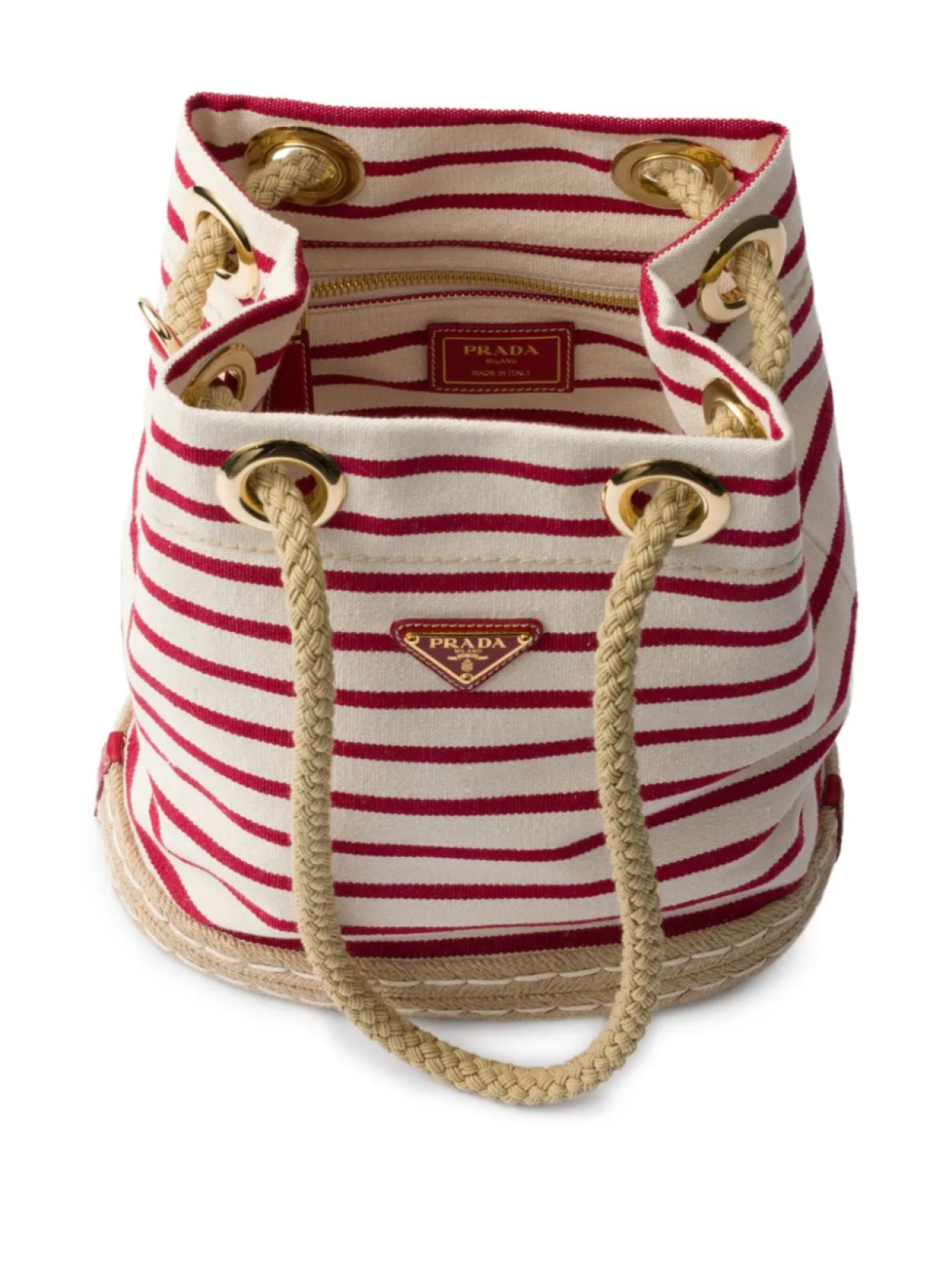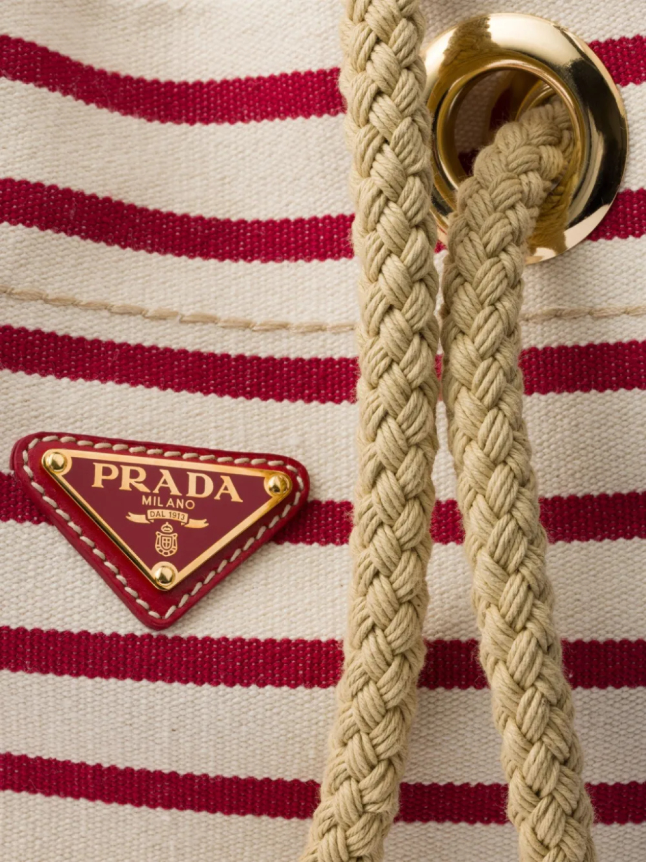 Маленькая сумка-ведро в полоску Prada, нейтральный