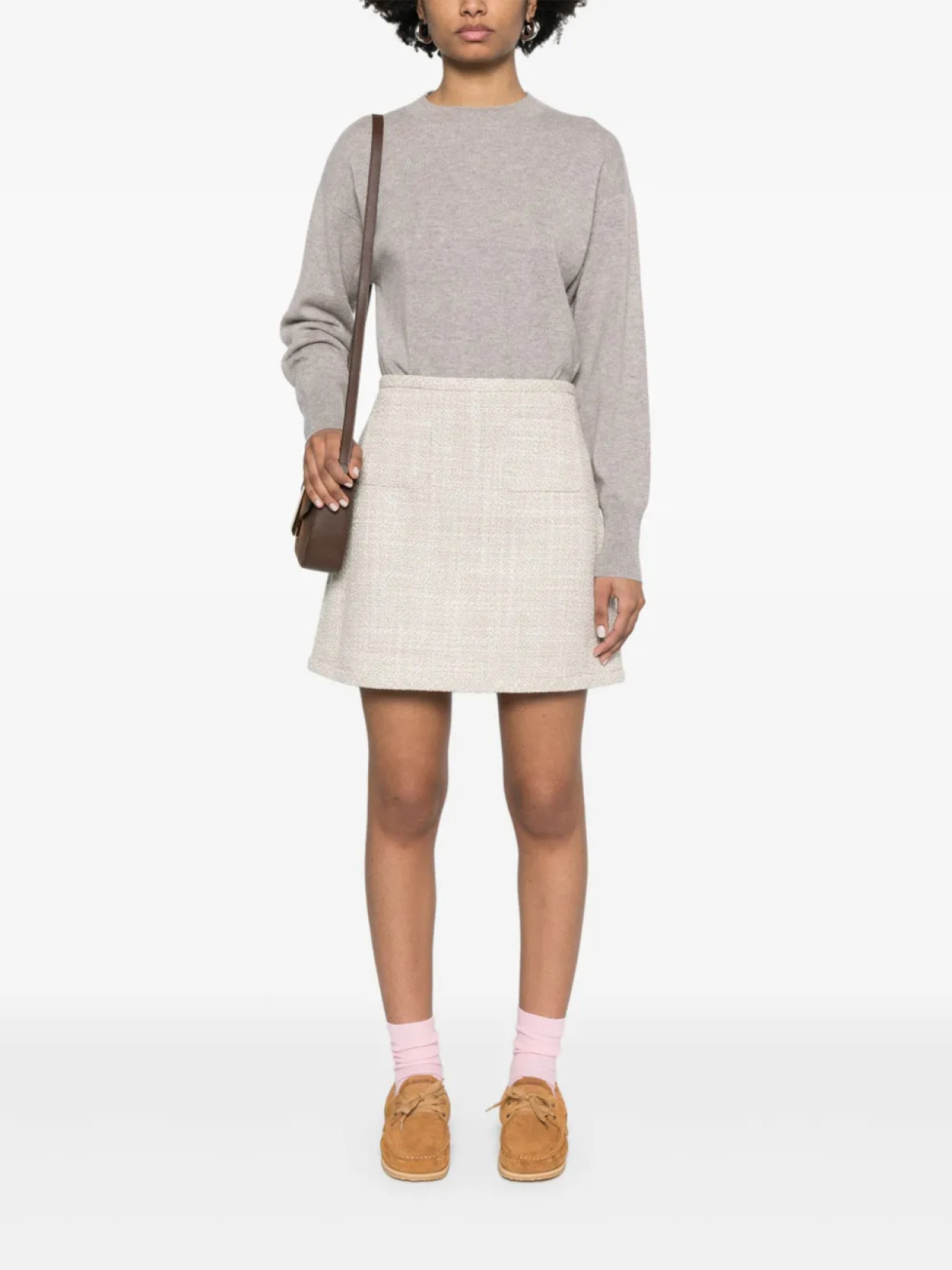 Мини-юбка из твида А-силуэта Theory, нейтральный