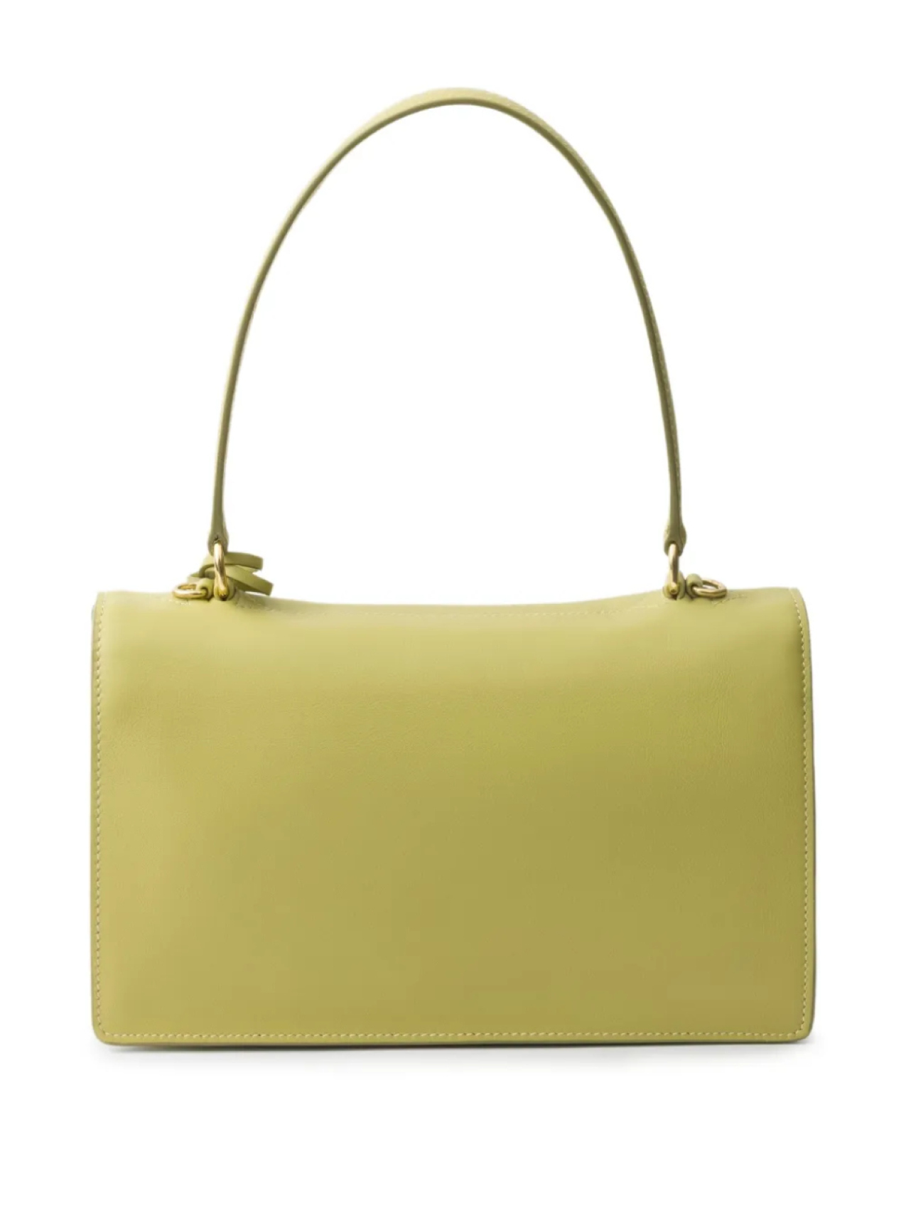 Светло-зеленая полированная отделка, верхний клапан, застежка с центральным замком-кнопкой, съемный плечевой ремень, одна верхняя ручка, несколько внутренних отделений, карман на молнии, подвеска-логотип, золотистая фурнитура