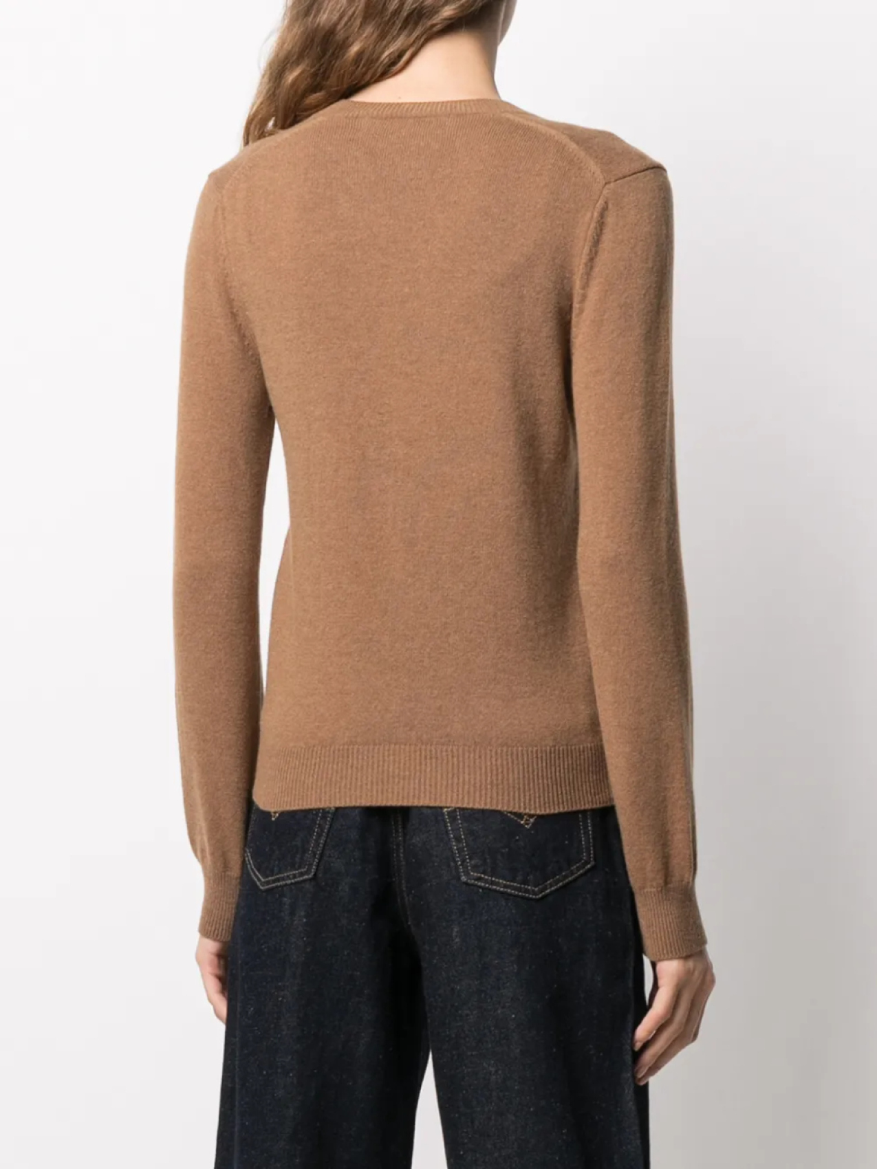 Вышитый логотип на груди, детали в рубчик, V-образный вырез и длинные рукава. Цвет: коричневый.