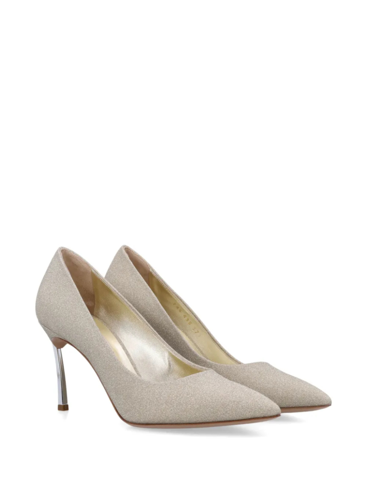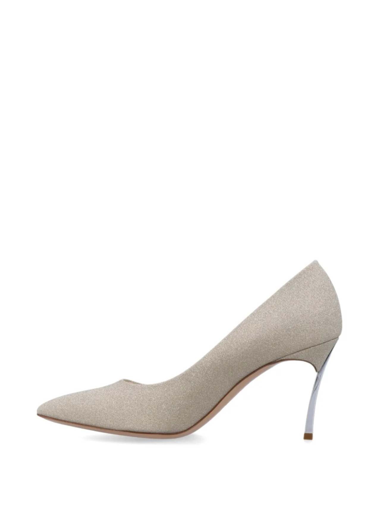 Светло-бежевые туфли с блестками, острым носком и высоким скульптурным каблуком