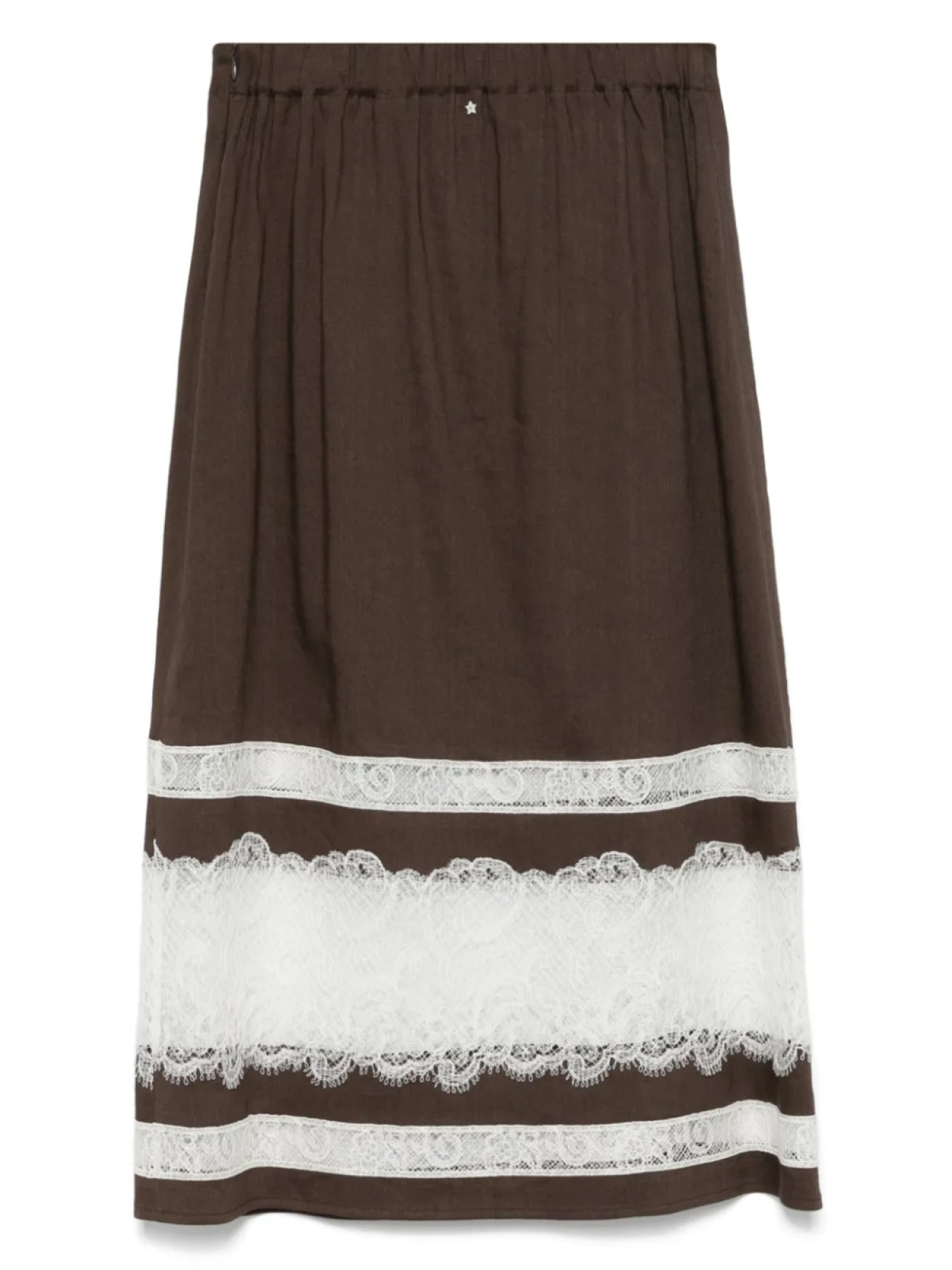 Юбка миди с кружевом Lorena Antoniazzi, коричневый