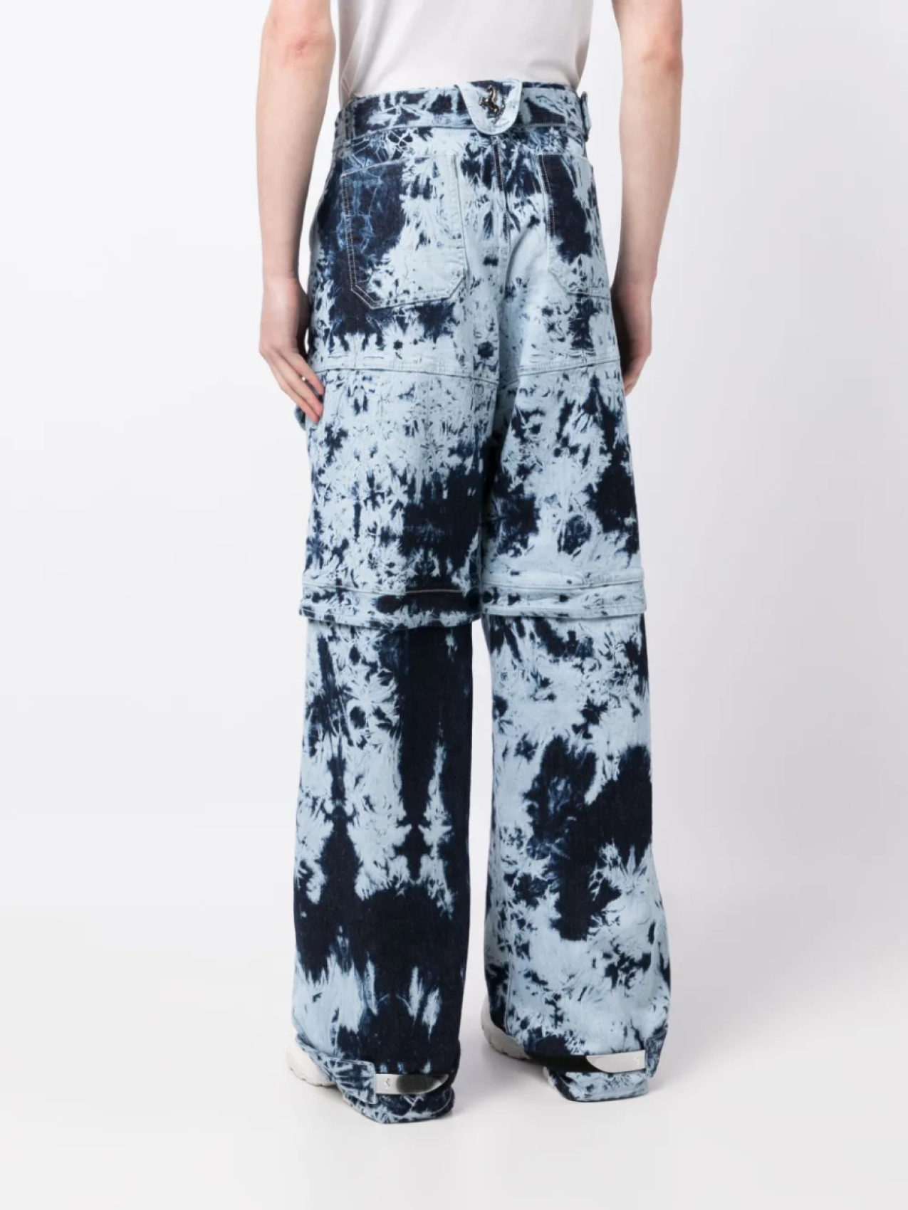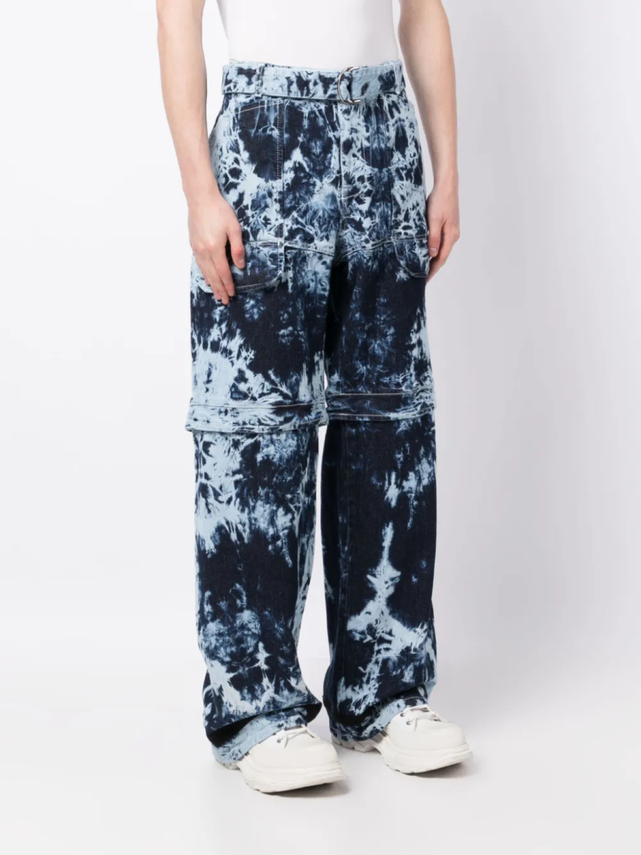 Вставки, принт тай-дай, ремень на талии, петли для ремня, два передних кармана с клапанами и два накладных кармана сзади.