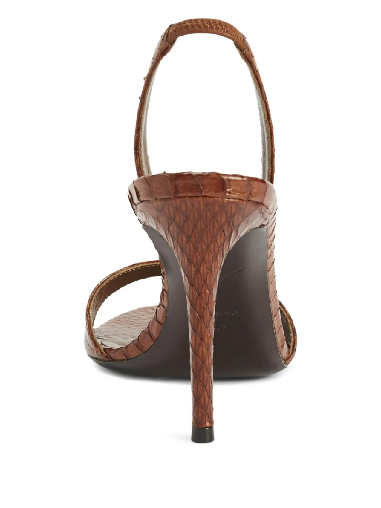 Верблюжье-коричневого цвета с ремешком на пятке, высокой шпилькой, фирменной стелькой и открытым носком
