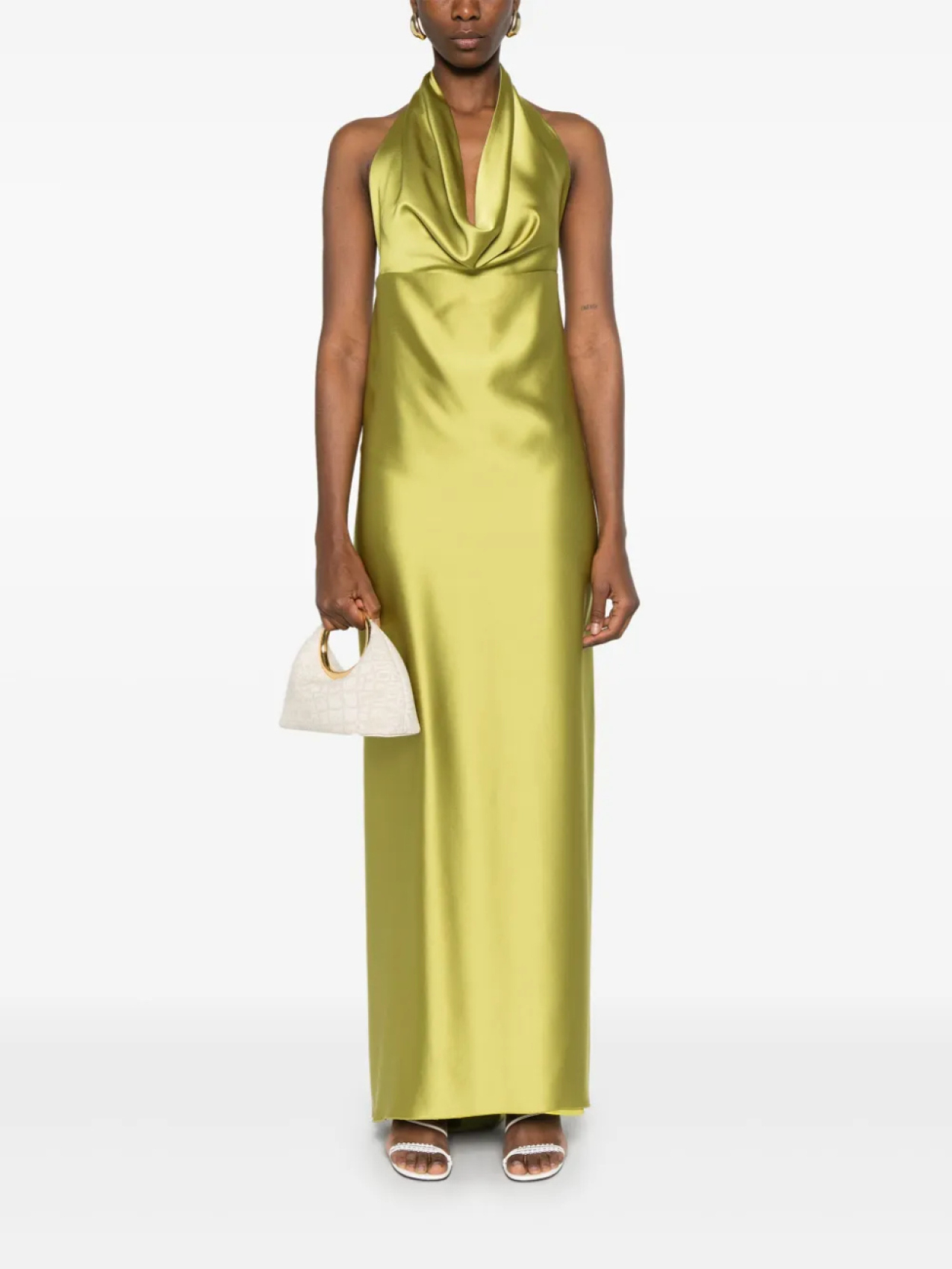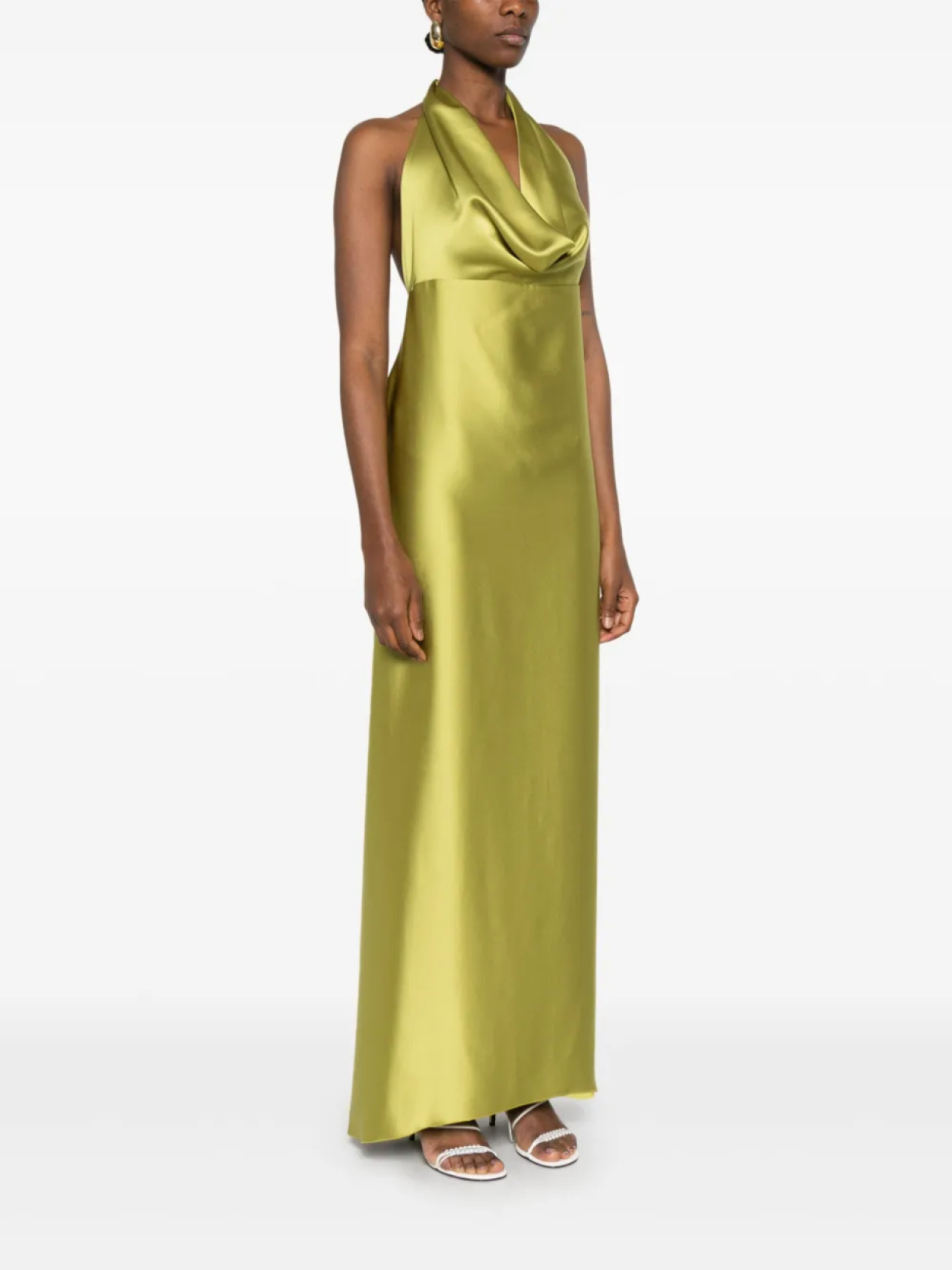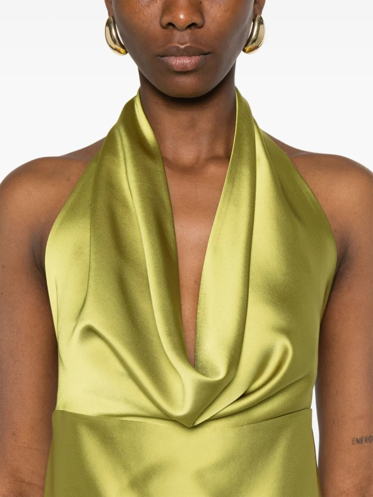 Авокадового цвета, на подкладке, с открытой спиной и халтером